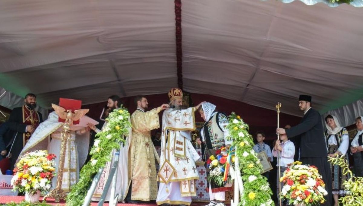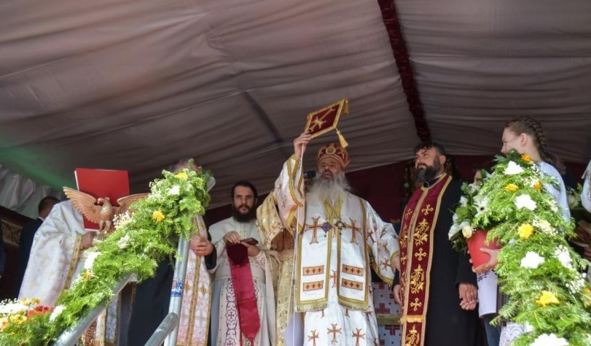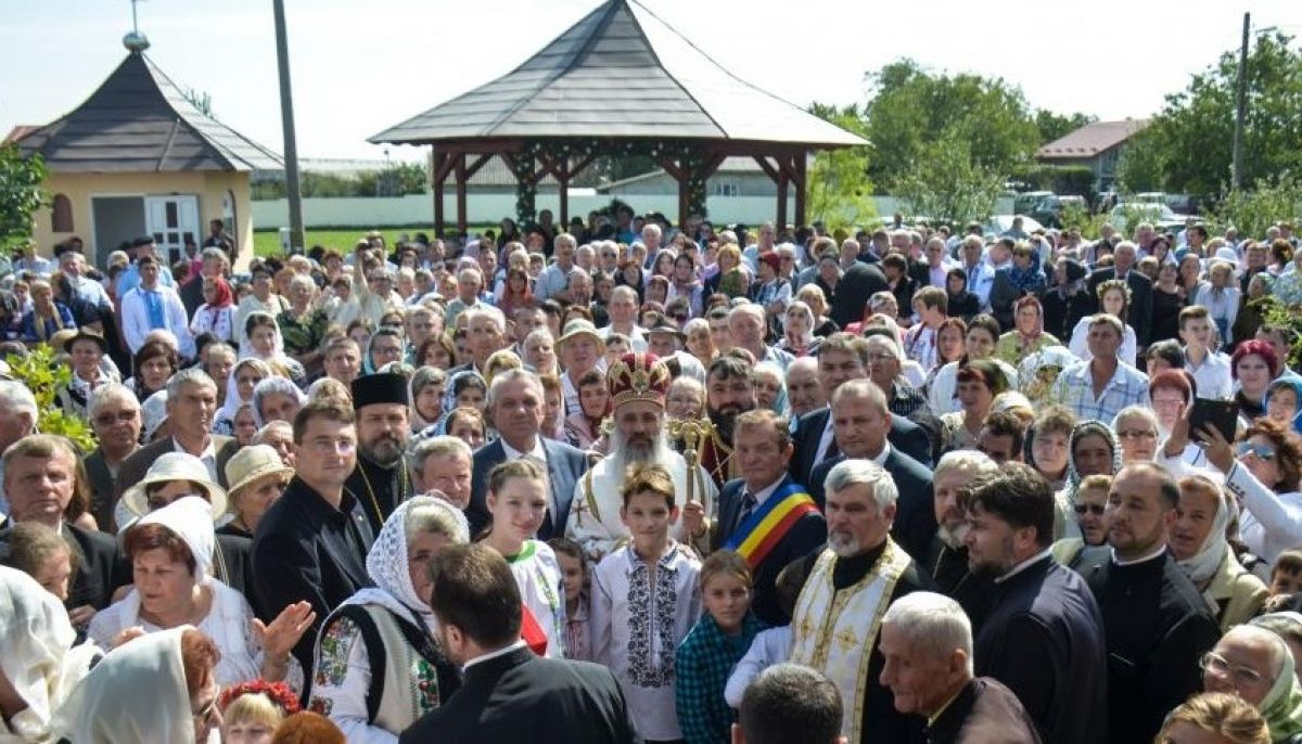 Bătrânii satului, dar şi tineri şi copii îmbrăcaţi în tradiţionalul costum popular l-au întâmpinat la poarta bisericii pe Mitropolitul Moldovei şi Bucovinei, care, după tradiţionala primire cu pâine şi cu sare, a fost condus de soborul slujitor până în faţa bisericii, unde a început slujba de târnosire a locaşului de cult. Biserica cu hramul „Sfinții Arhangheli Mihail și Gavriil “ a fost sfinţită prin stropire cu apă sfinţită şi prin ungere cu Sfântul şi Marele Mir, iar Sfânta Masă din altar a fost târnosită, împodobită şi pregătită pentru slujbele cultului divin. La slujba de sfinţire, urmată de slujba Sfintei Liturghii, săvârşită pe o scenă frumos împodobită, au luat parte sute de credincioşi, care au stat şi la rând pentru a trece prin Sfântul Altar. La eveniment au participat şi membri ai autorităţilor locale.