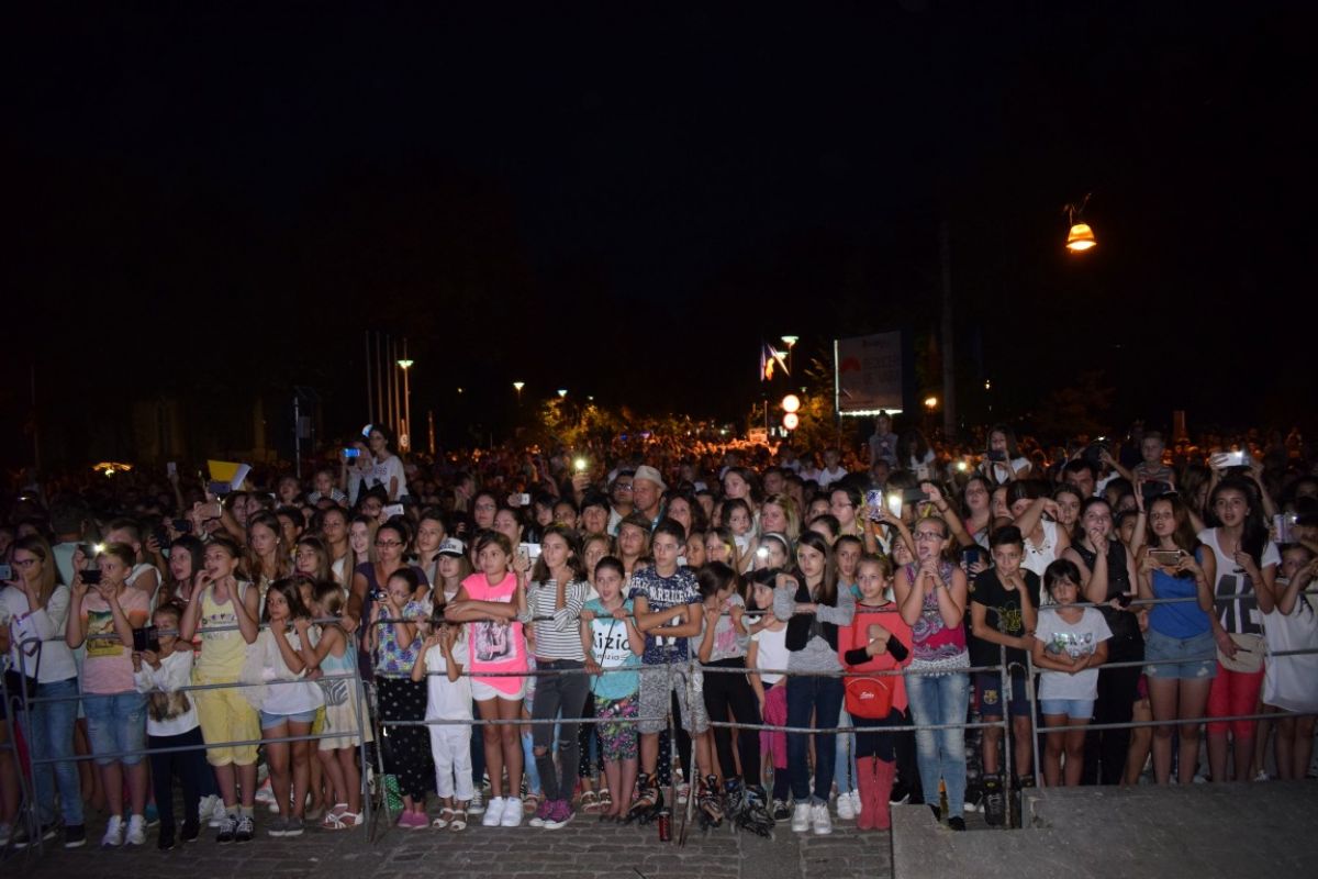 Cei care se află în primele rânduri încearcă, cu ajutorul telefoanelor mobile să surprinsă fotografii cu cântăreața care se bucură de un succes impresionant în România.