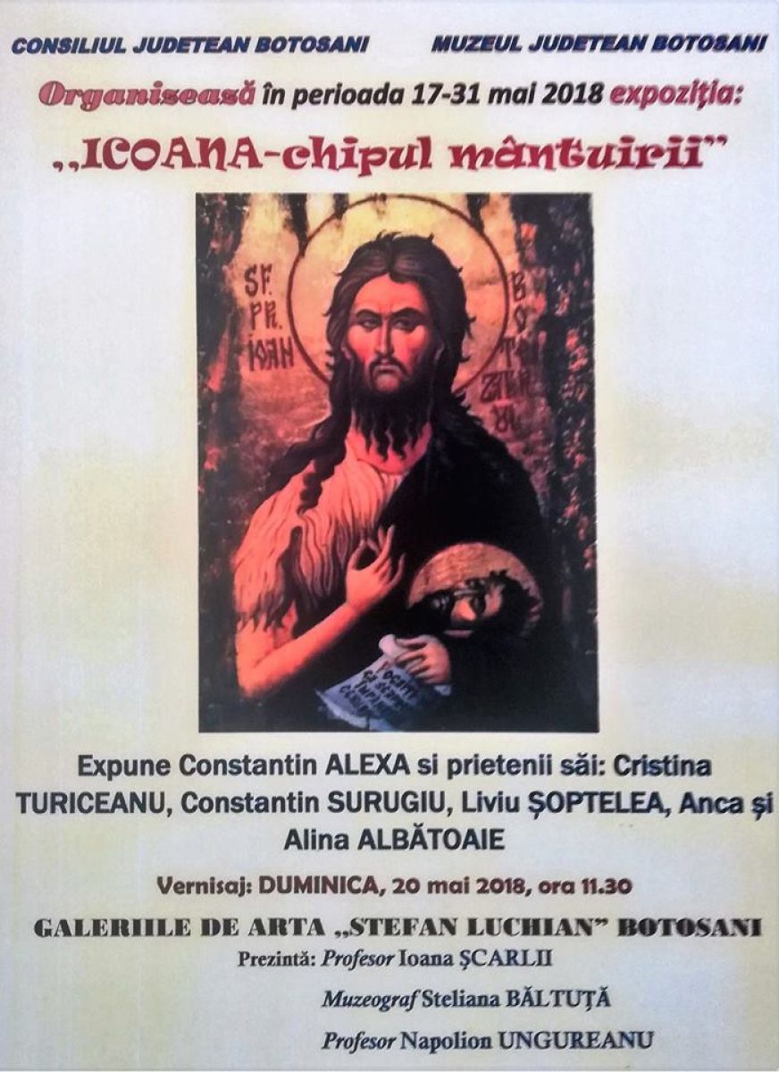 Muzeul Judeţean Botoşani prezintă, în perioada 17 – 31 mai 2018, în spaţiul Galeriilor de Artă ,,Ştefan Luchian” Botoşani, expoziţia temporară ,,Icoana-chipul mântuirii”.