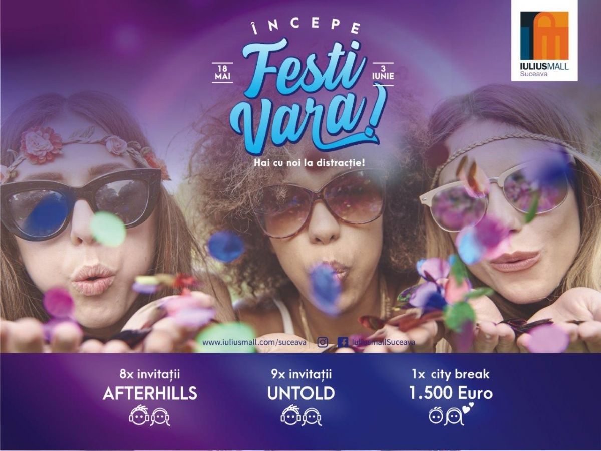 Ți-ai făcut planurile pentru distracția din această vară? Iulius Mall Suceava te trimite unde îți dorești! Într-un City Break către o destinație la care visezi de mult ori la cele mai tari festivaluri de muzică ale verii, Afterhills sau Untold. „Începe FestiVara”, așa că îți oferim cele mai cool premii.