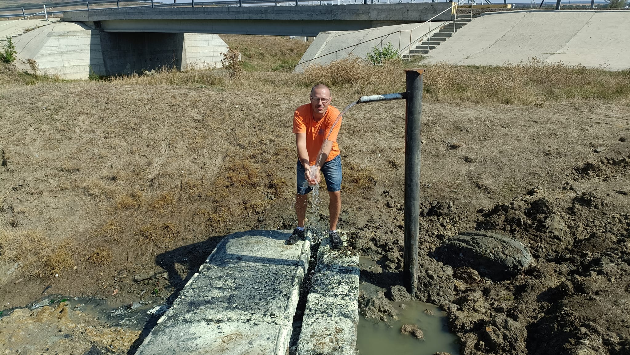 Propriu-zis din măruntaiele pământului, printr-o ţeavă de la marginea unui câmp, curge o apă care parcă fierbe şi se aprinde ca o torţă în contact cu o sursă de foc, apoi se varsă în râul Sitna, aflat la câţiva paşi de gura izvorului.