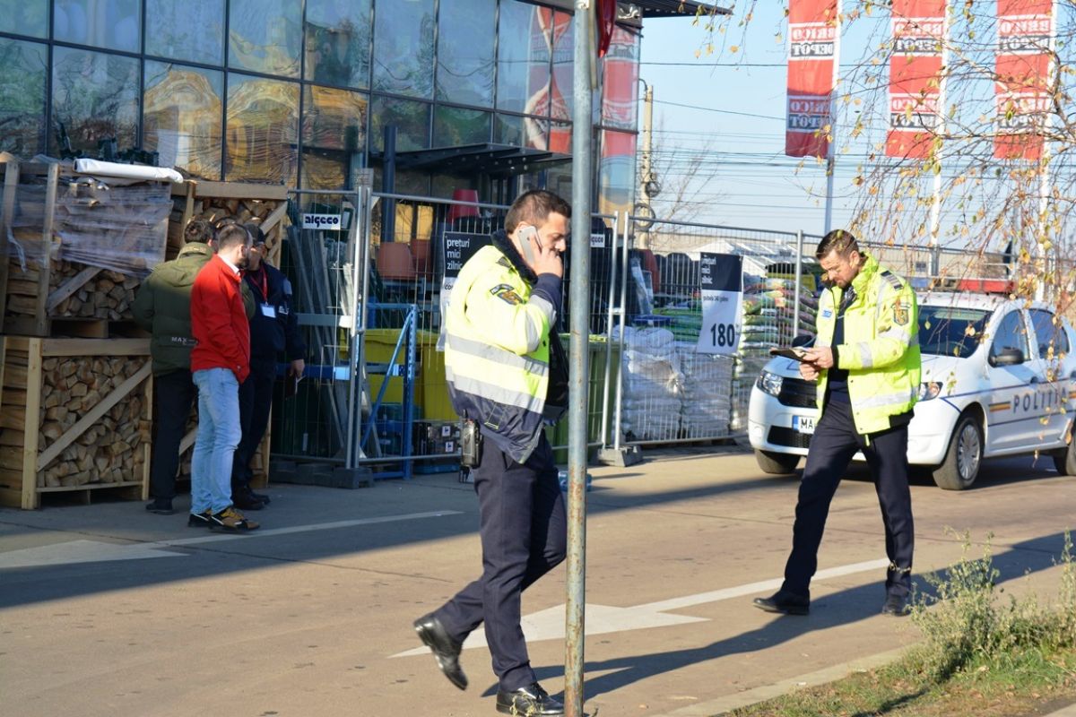 Au plecat în trombă, trecând peste piciorul agentei de pază de la magazin care ulterior a fost transportată la spital. Autorii se aflau într-o mașină cu numere de București, un VW Passat de culoare gri.