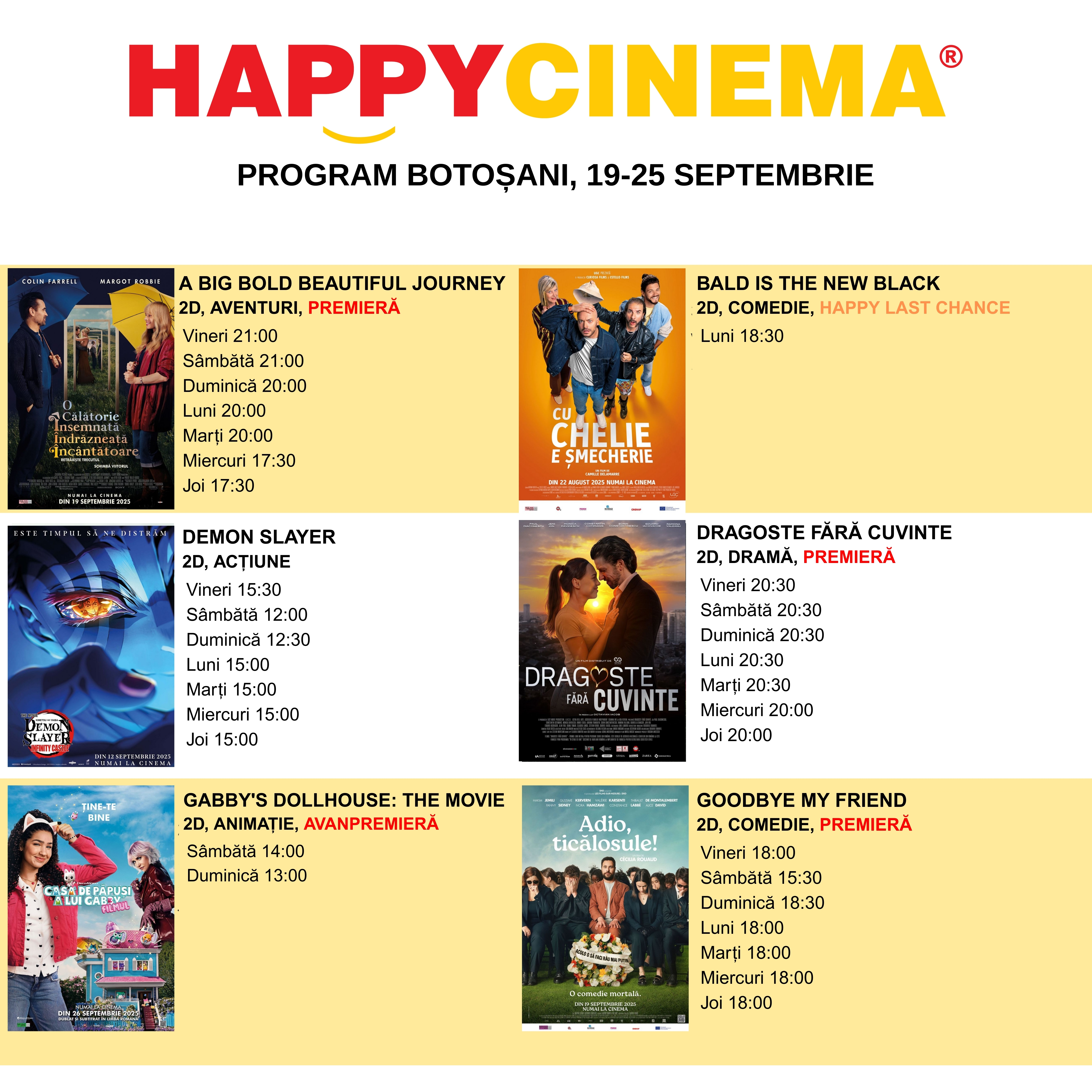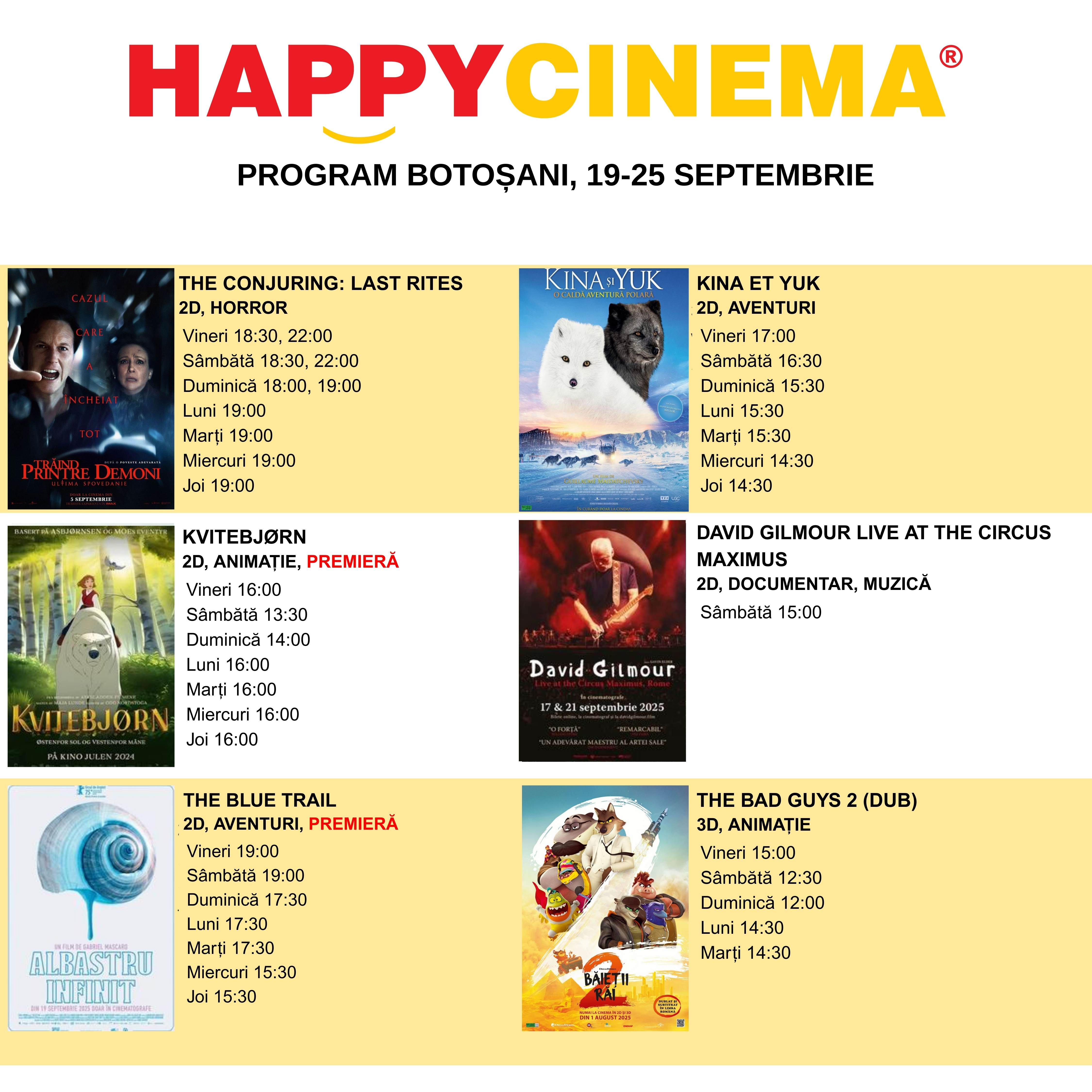 Iată programul complet la Happy Cinema, pentru săptămâna 19 – 25 septembrie 2025