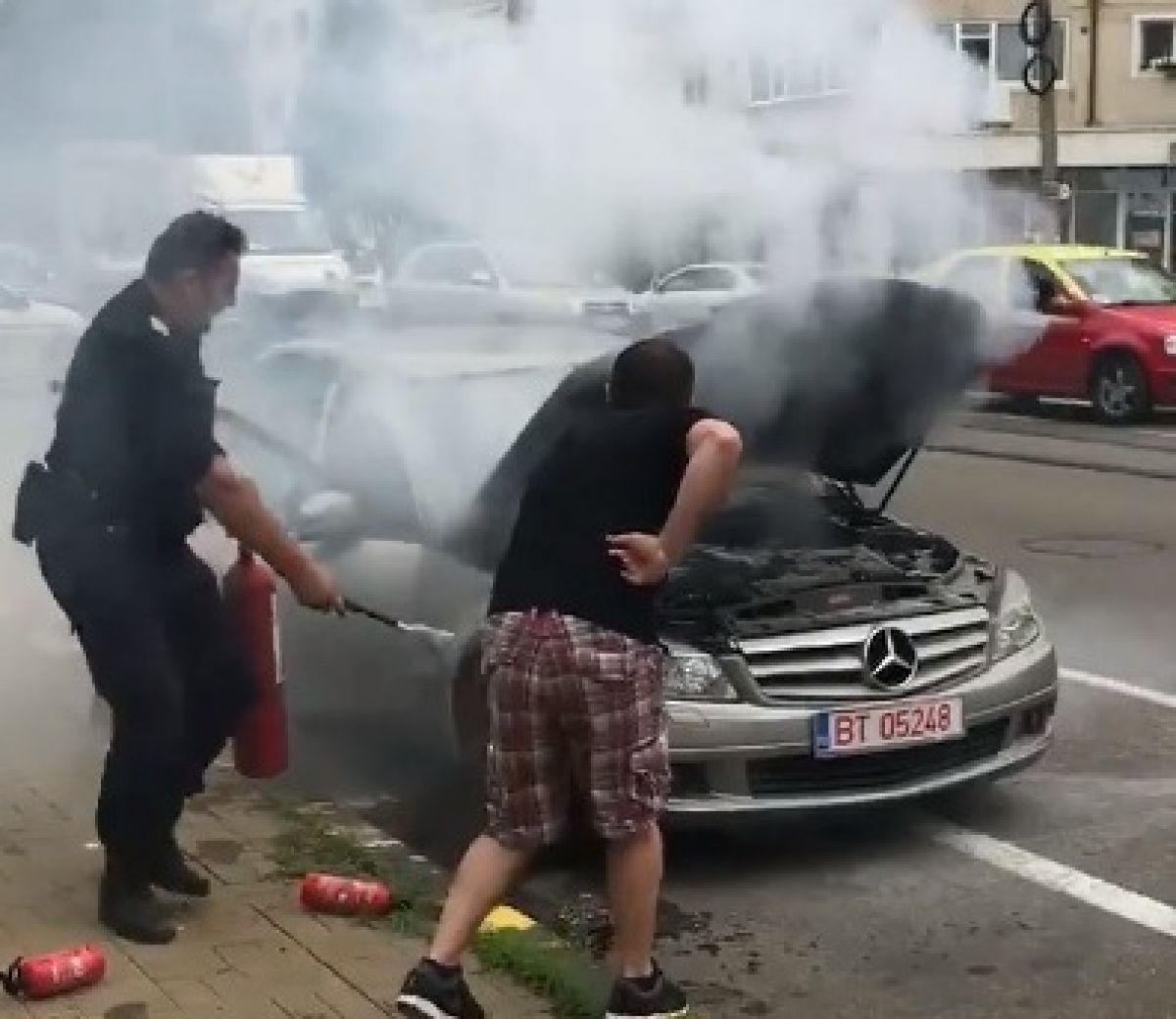 În ziua respectivă, subofiţerul a intervenit pentru stingerea incendiului izbucnit în jurul orelor 12.00 la un autovehicul care circula pe strada Calea Naţională din municipiul Botoşani.