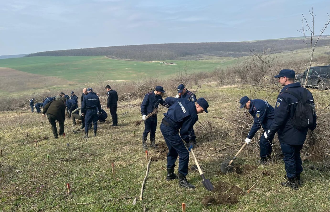În această dimineață, jandarmii botoșăneni și elevii Școlii Militare de Subofițeri Jandarmi Fălticeni au participat la o activitate de împădurire pe raza Ocolului Silvic Trușești.
