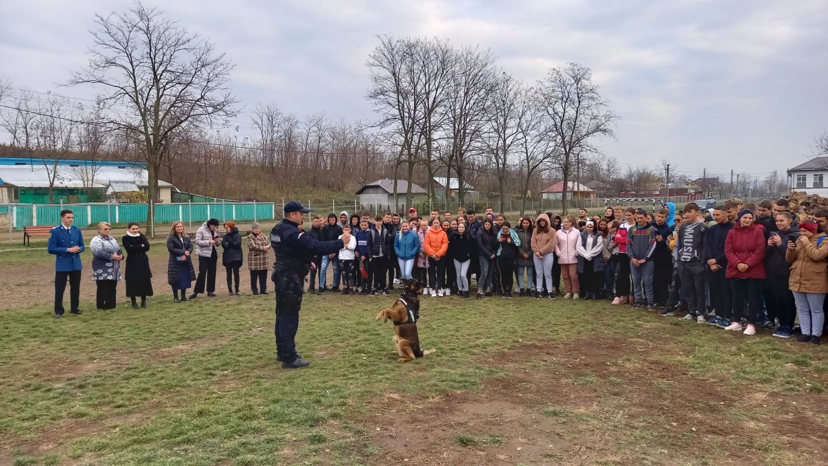 La sfârșitul activităților preventive, elevii au putut urmări un exercițiu demonstrativ executat de Grupa Acțiuni Speciale și Intervenție Antiteroristă din cadrul Inspectoratului de Jandarmi Județean Botoșani și câinele de serviciu Pih.