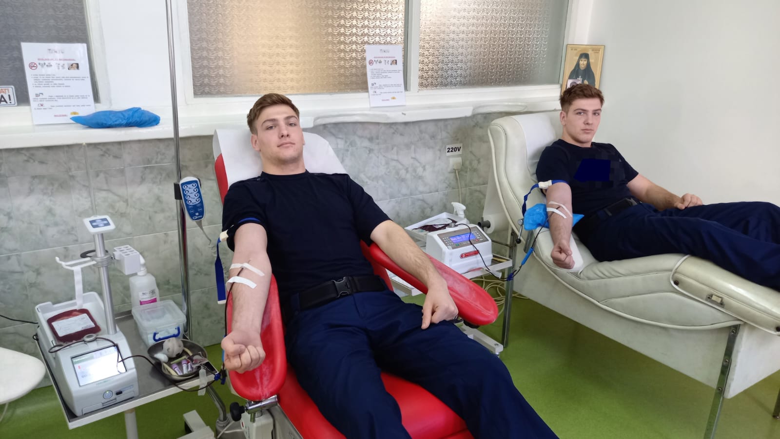 Florin și George, elevi ai Școlii Militare de Subofițeri Jandarmi ,,Petru Rareș" Fălticeni, aflați în practică la Inspectoratul de Jandarmi Județean(IJJ) Botoșani, au donat sânge în această dimineață pentru prima dată, în cadrul campaniei ,,Donează sânge! Salvează o viață" derulată premergător sărbătoririi Zilei Jandarmeriei Române - 3 Aprilie.