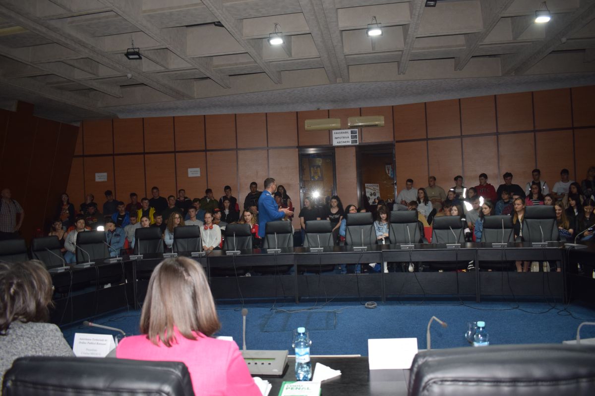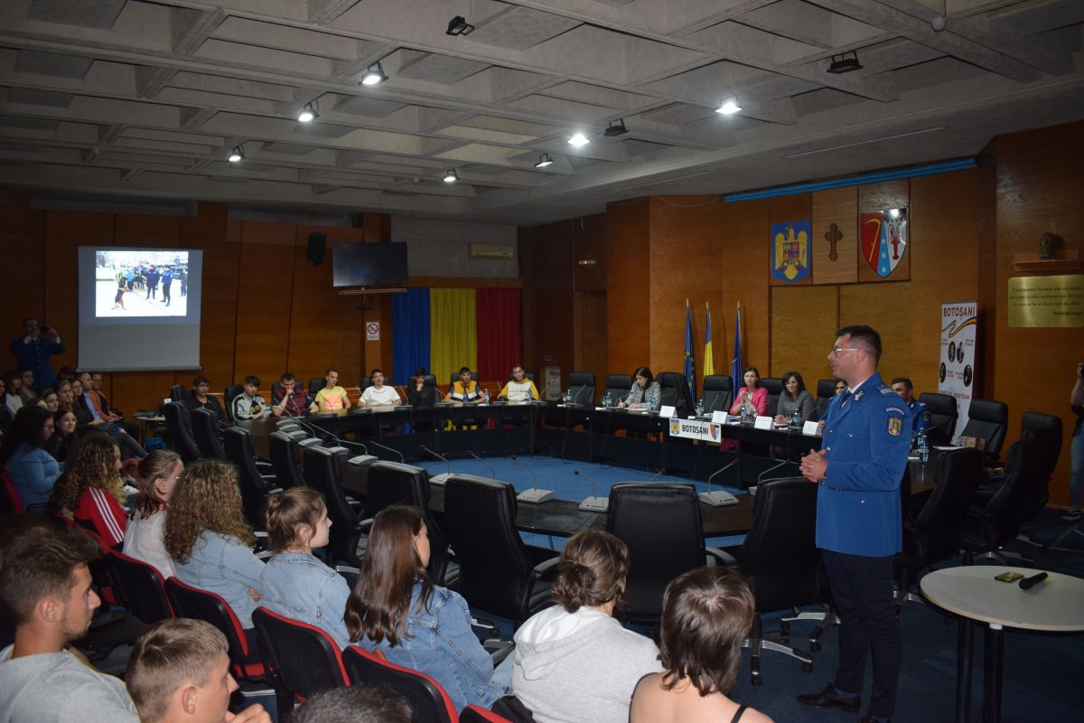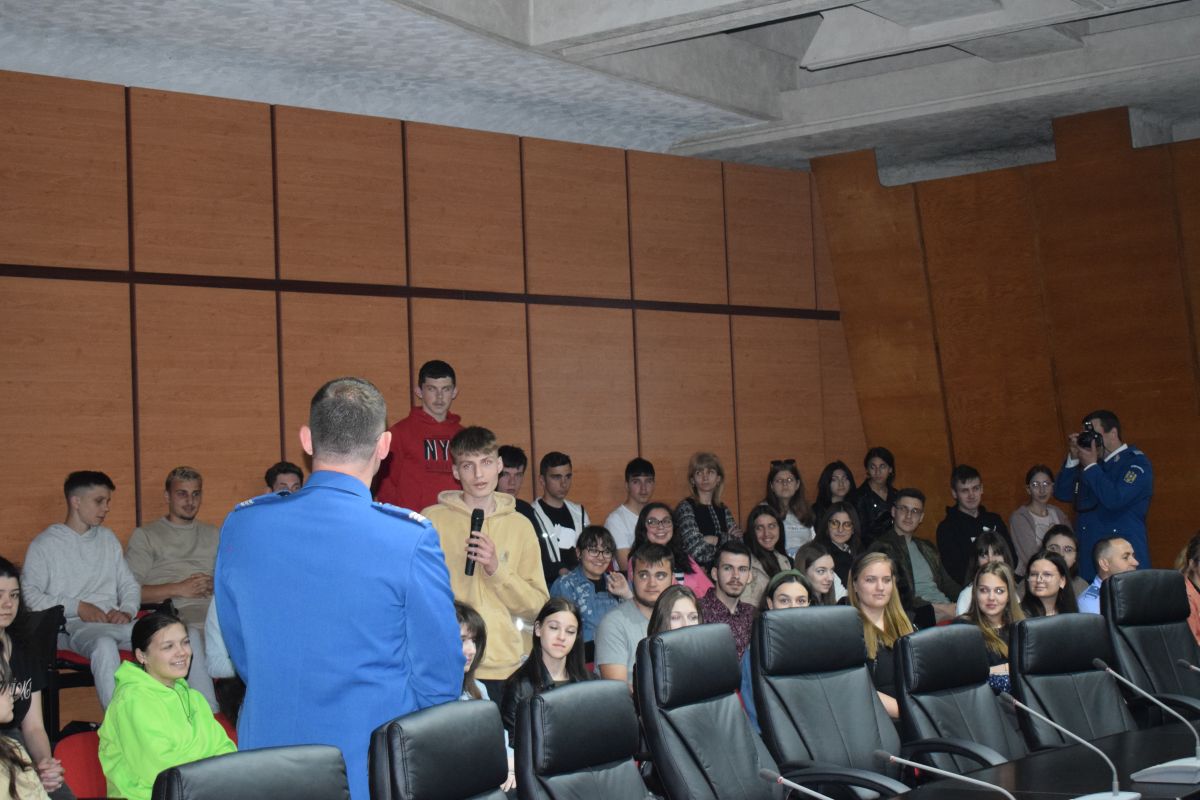Zeci de elevi au participat astăzi la o acțiune organizată de Inspectoratul Județean de Jandarmi (IJJ) în sala Nicolae Iorga a Palatului Administrativ.