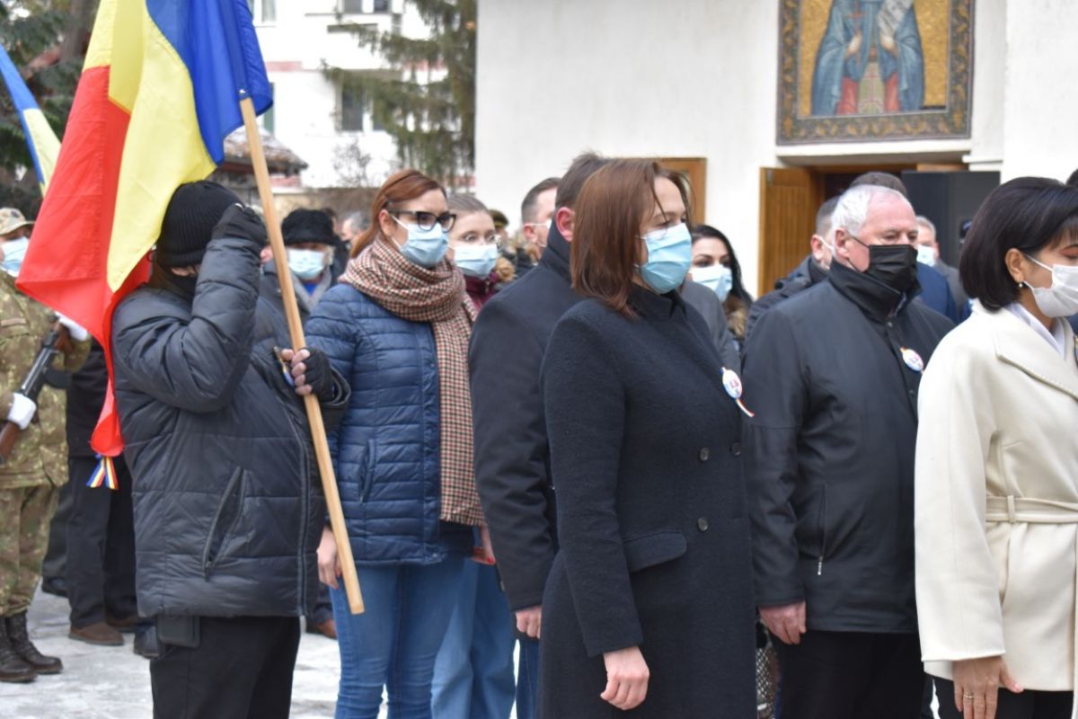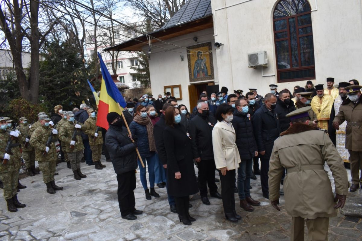 Manifestațiile care au avut loc în prima parte a zilei de 22 decembrie 2021 de la Botoșani au fost încheiate cu o ceremonie de depunere de jerbe de flori la Monumentul din curtea Bisericii Sfânta Parascheva.