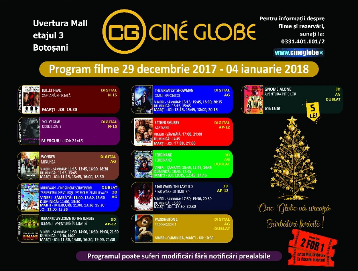 De asemenea botoşănenii cinefeli pot vedea în avanpremieră pelicula Molly's Game (2017) Jocuri secrete în regia lui Aaron Sorkin cu actorii în rol principal: Jessica Chastain, Idris Elba, Kevin Costner, Michael Cera.