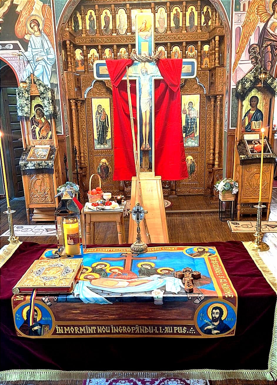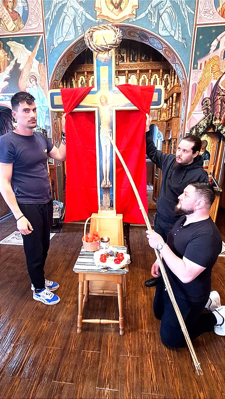 Simbolurile suferinței și sacrificiului Său, au stat mărturie pe Sfânta Cruce scoasă în joia cea mare în naosul capelei.