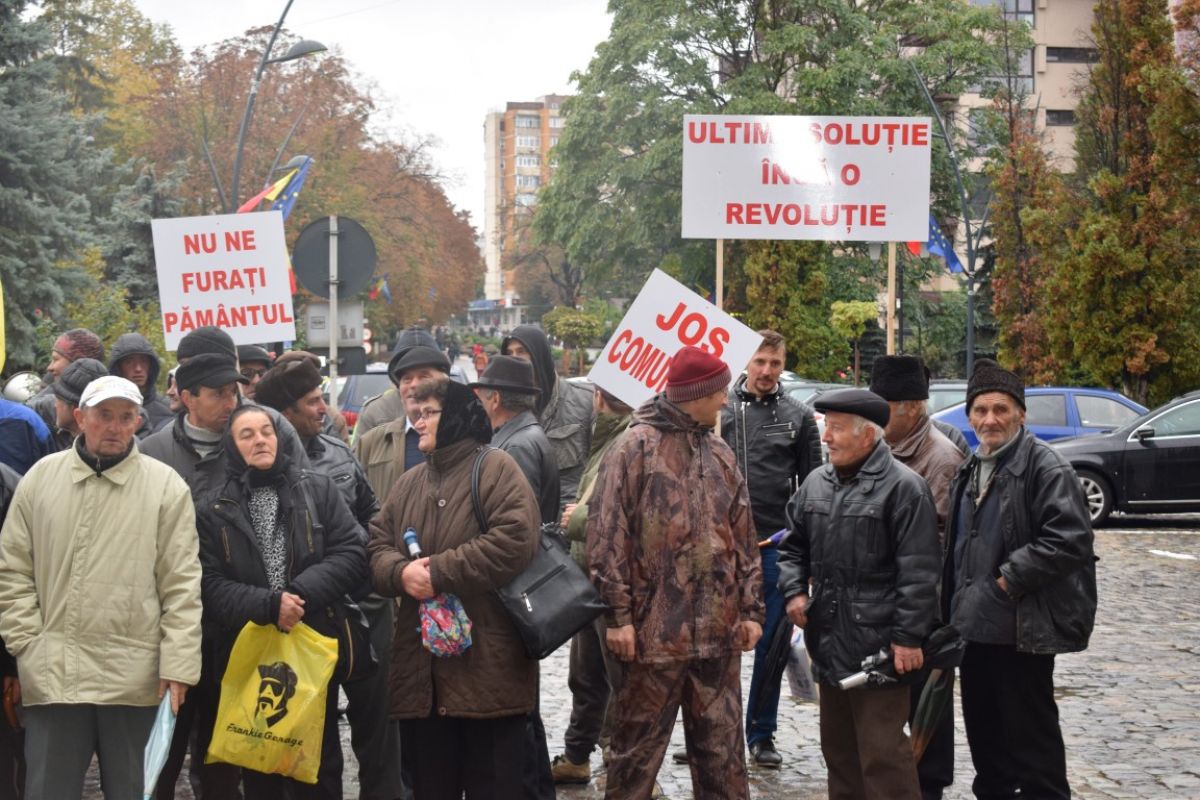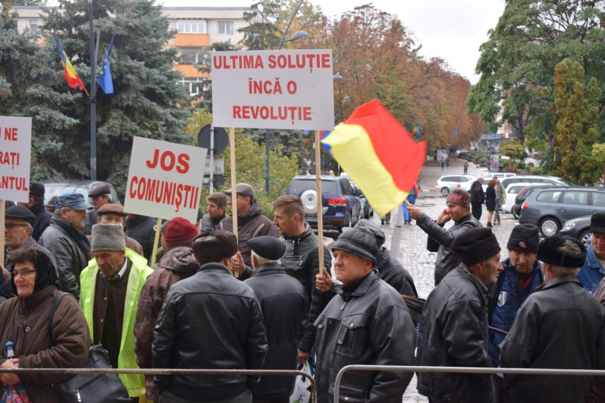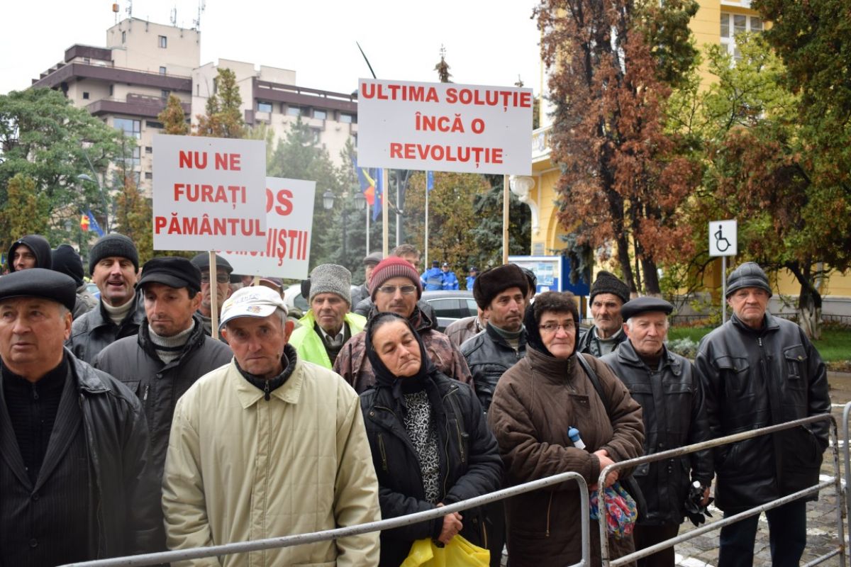 Oamenii au stat în fața Prefecturii și au strigat continuu: Hoții, hoții – Jos comuniștii – Vrem dreptate. Delegația lor a fost primită de funcționari din Prefectură, directorul OCPI și subprefectul Dana Beclea. Prefectul nu a luat parte la întâlnire.