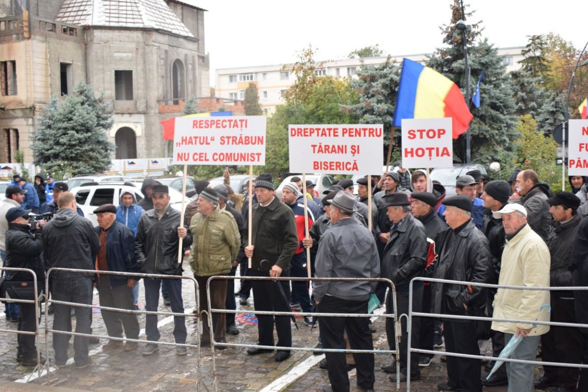 ”Protestăm împotriva celor care nu vor să respecte legea și nu vor să facă dreptate atât pentru țărani cât și pentru Biserică. Sunt oameni care încă nu au înțeles după atâția ani că dreptul omului este sfânt. Vor acum să dezmoștenească generații de țărani din satul Mândrești, s le ia pământurile”