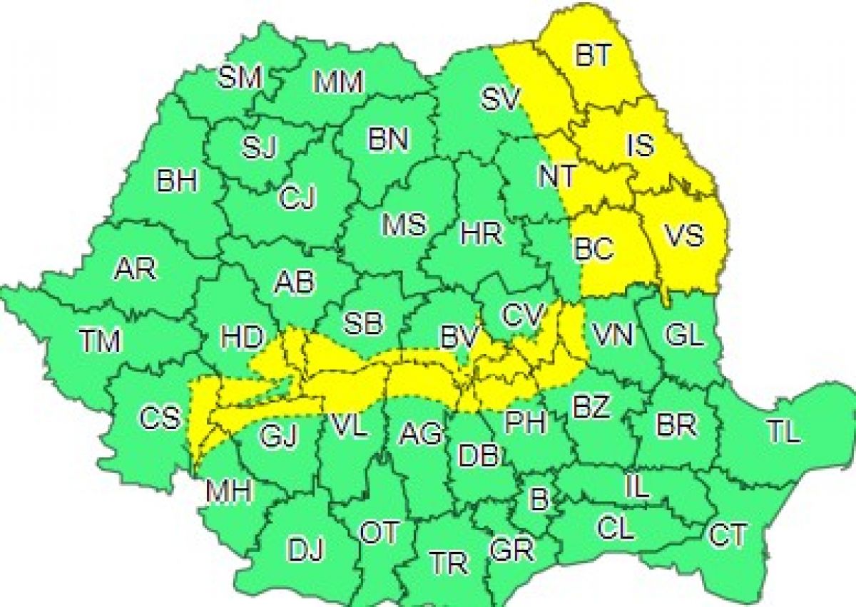 Potrivit meteorologilor, vântul va sufla cu viteze de 55-60 km/h, iar pe arii restrânse 70 - 75 km/h.