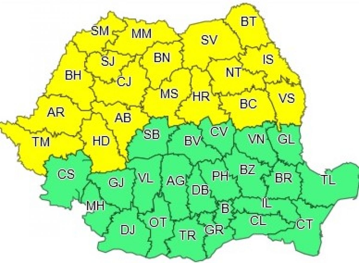 Administrația Națională de Meteorologie a emis o atenționare de tip Cod Galben pentru județul Botoșani.