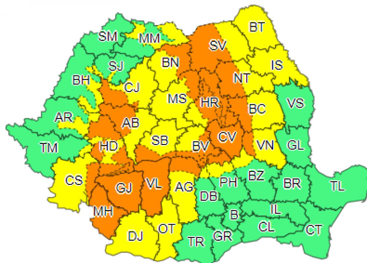 Alerta este valabilă începând cu ora 12.00, până în această seară, la ora 23.00.