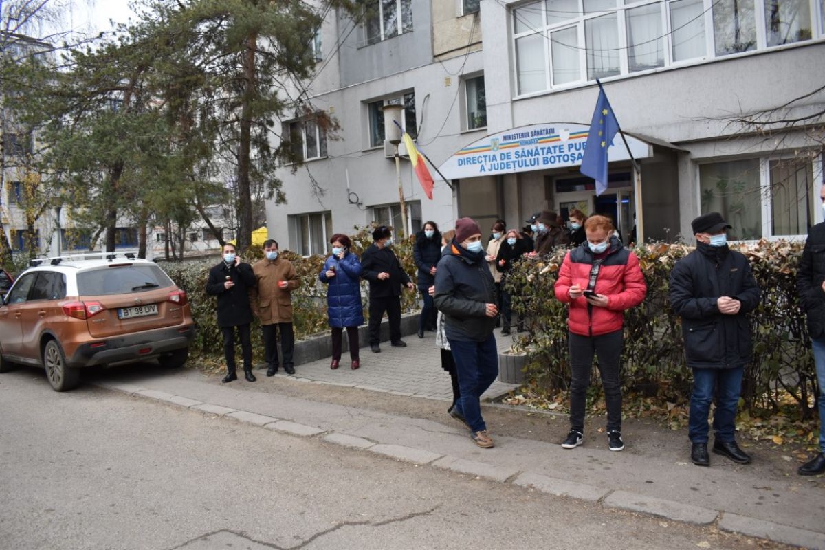 Au fost momente încărcate miercuri la amiază în fața sediului Direcției de Sănătate Publică (DSP) din municipiul Botoșani.