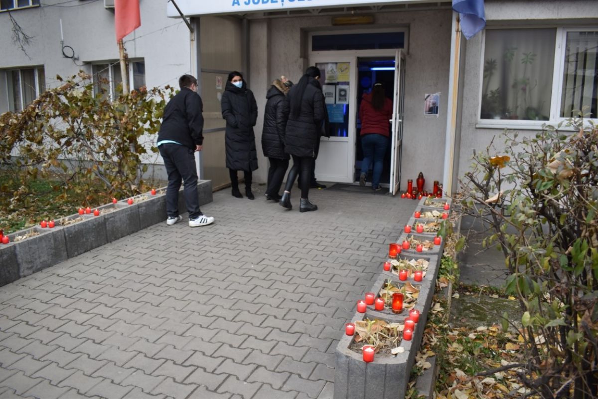 Mașina mortuară s-a oprit câteva minute în fața DSP într-o liniște dureroasă. Nimeni nu a schițat vreun gest, cu excepția semnului Sfintei Cruci.