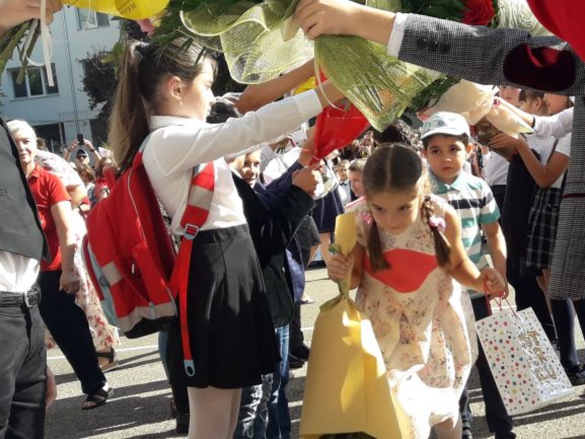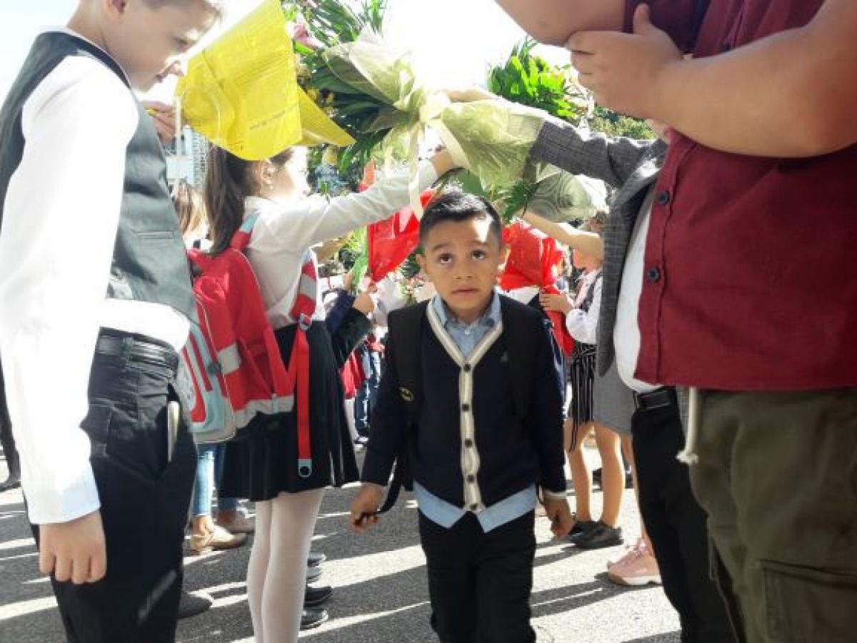Festivitatea de deschidere a anului școlar i-a avut ca actori principali pe cei mici, însă, veniți acum pentru chiar prima zi de școală. Au fost așteptați cu podul de flori realizat de cei de-a IV-a, iar imaginile celor ce treceau pe sub pod au fost de-a dreptul încântătoare.