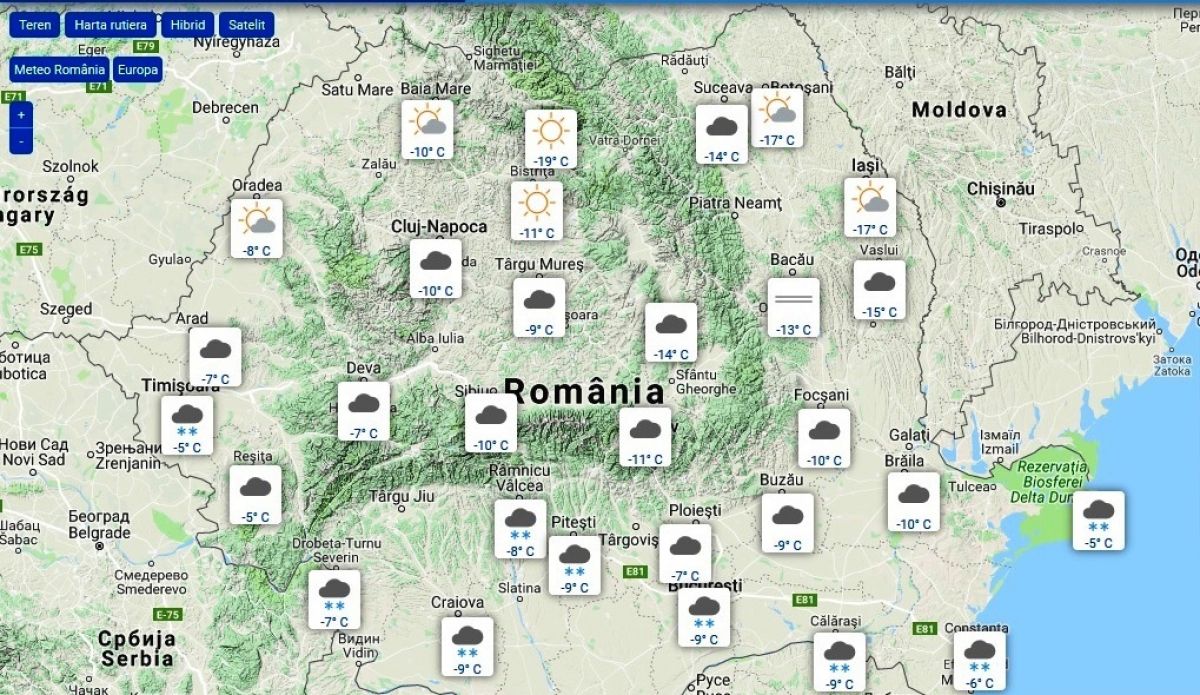 Astfel, la ora 8:00, în municipiul Botoșani se înregistrau -17,5 grade Celsius, cea mai scăzută temperatură dintre toate capitalele de județ din țară după Bistrița, unde erau - 19 grade.