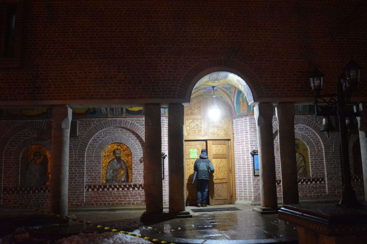 La Biserica ”Sf. Vasile cel Mare”, zeci de creștini se aflau în rugăciune cu puțin înainte de miezul nopții. Preotul Petru Chirvase a citit Acatistul Sfântului Vasile cel Mare, sfântul ocrotitor al bisericii din curtea Spitalului Mavromati.