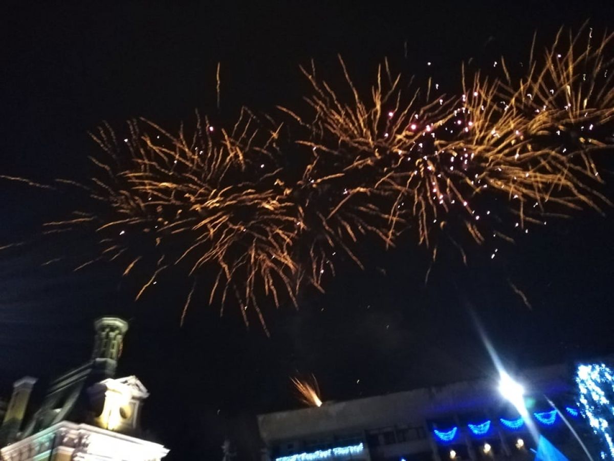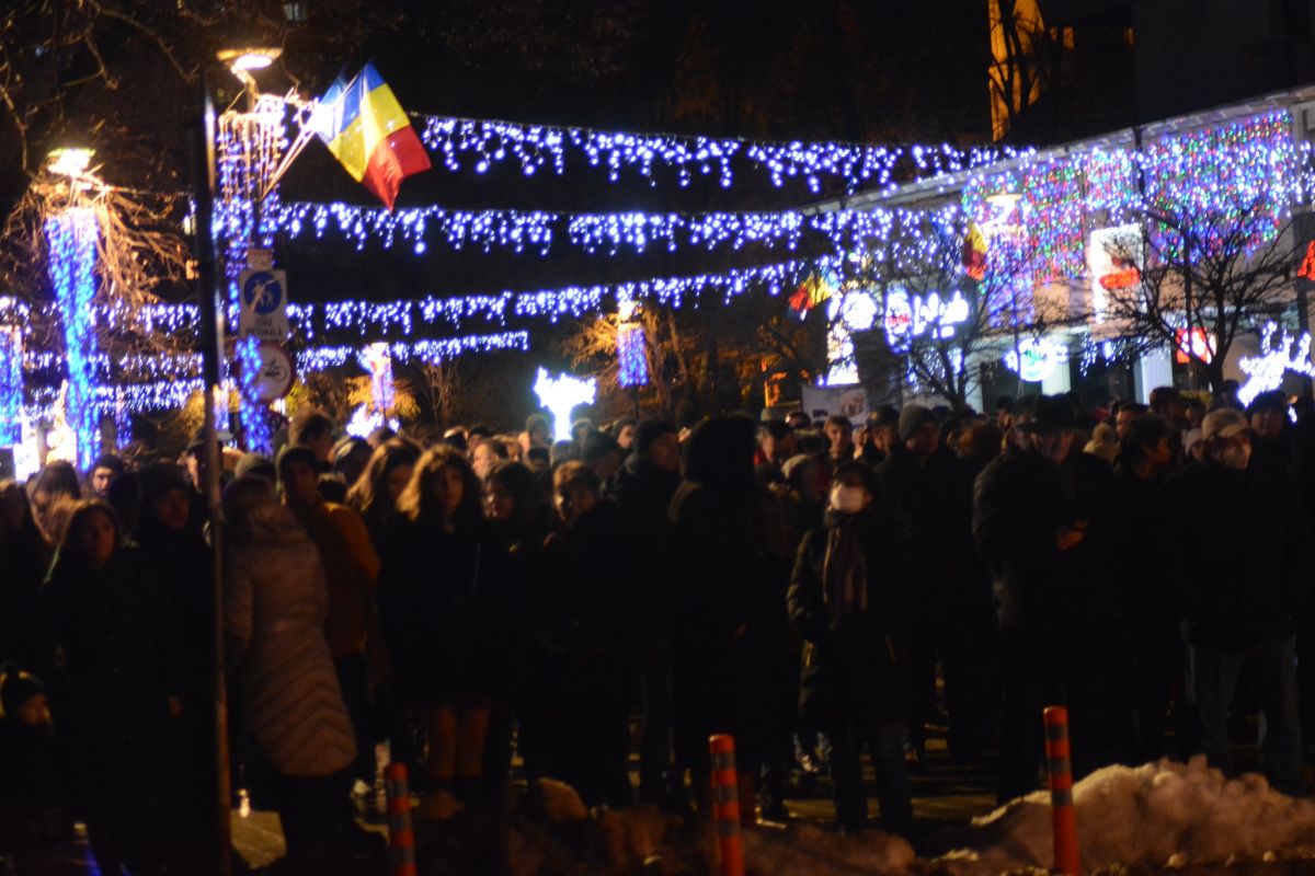 Fără concert, fără celebra numărătoare inversă care anunța momentul trecerii în noul an, atmosfera nu a fost una lipsită de emoție. Cu ochii pe ceas, mulți dintre cei prezenți au numărat secundele până când spectacolul de lumini a izbucnit de pe clădirea Palatului Administrativ. În explozii de bucurie, oamenii au desfăcut sticlele și au închinat paharele de șampanie, îmbrățișându-se și urându-și la mulți ani.