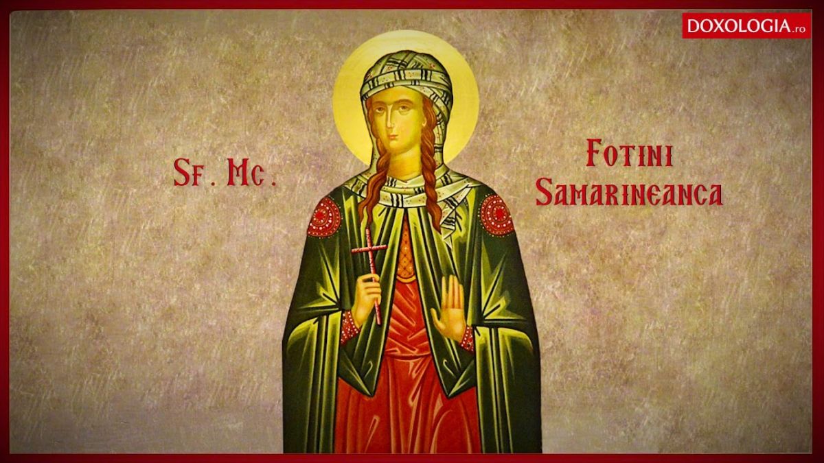 Sfântul Ioan Teologul descrie în Evanghelia sa dialogul dintre Mântuitorul Hristos şi o femeie samarineancă, înscriindu-i acesteia din urmă numele în istorie. După două milenii, cel puţin o dată în an, lumea creştină aminteşte de cea care a vorbit cu Mesia lângă fântâna lui Iacov din cetatea Sihar, în Samaria. Iar numele şi faima i se vor pomeni până la sfârşitul veacurilor. Relatarea convorbirii lui Iisus cu femeia samarineancă este unul dintre cele mai fertile momente biblice, mărturie în acest sens stând exegezele unor mari păstori de suflete ai Bisericii, din perioada patristică până la teologi contemporani.