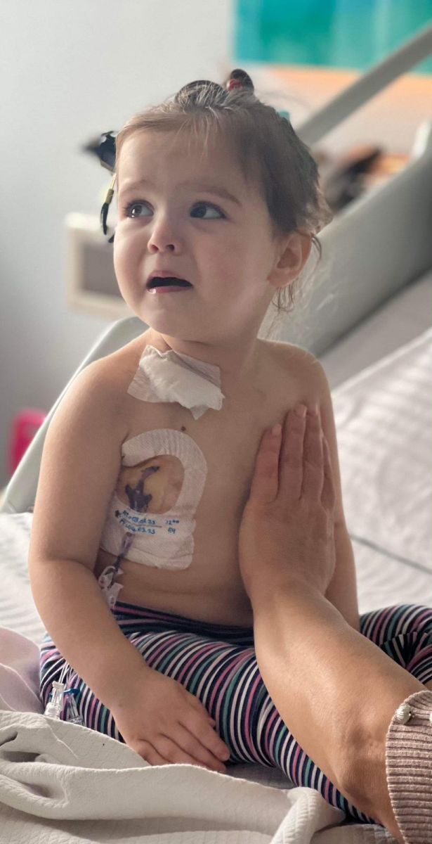 Amelia are numai 2 anișori, iar în fiecare zi este supusă unor chinuri groaznice. De patru luni de zile, micuța e țintuită într-un pat de spital, conectată la perfuzii.