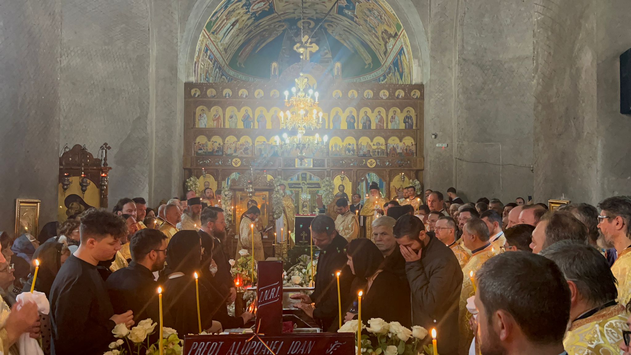 Biserica este arhiplină, lângă sicriu sunt vărsate lacrimi pline de suferință.