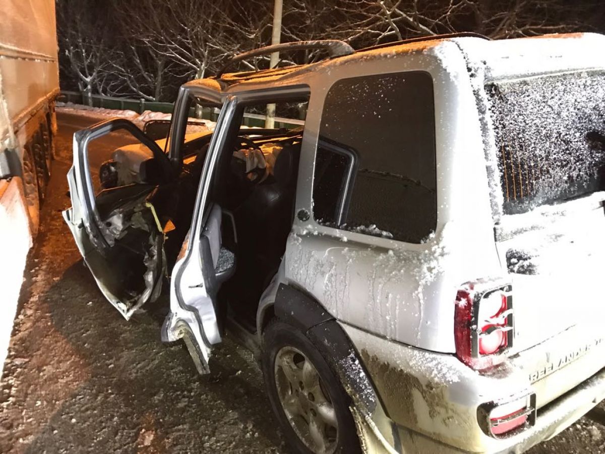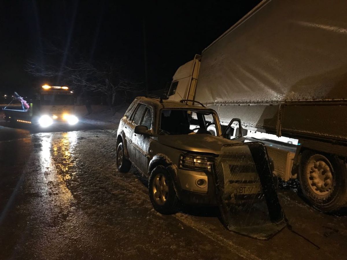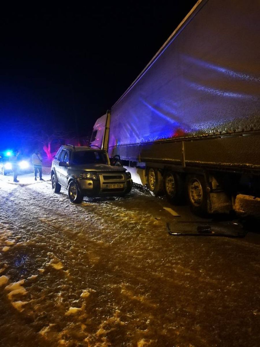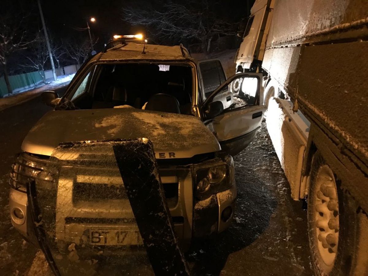 Autotrenul nu a mai urmat direcția normală de mers și a lovit violent o mașină de teren Land Rover.