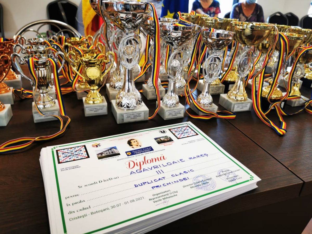 Concurenții au primit diplome de la înv. Vasile Mihalache, medalii de la primarul comunei Cristești, Lucian Borfotina, dar și cupe de la vicepreședintele Federației Române de Scrabble, Cătălin Caba.