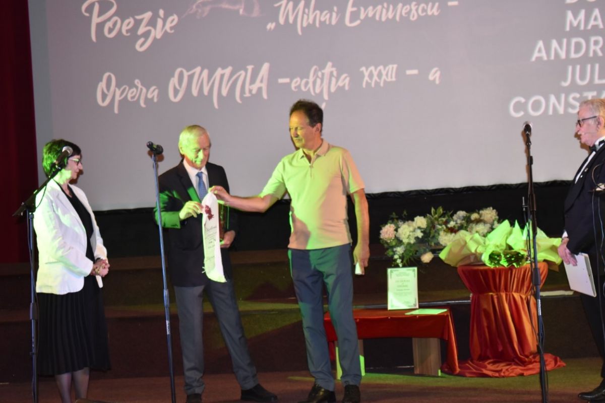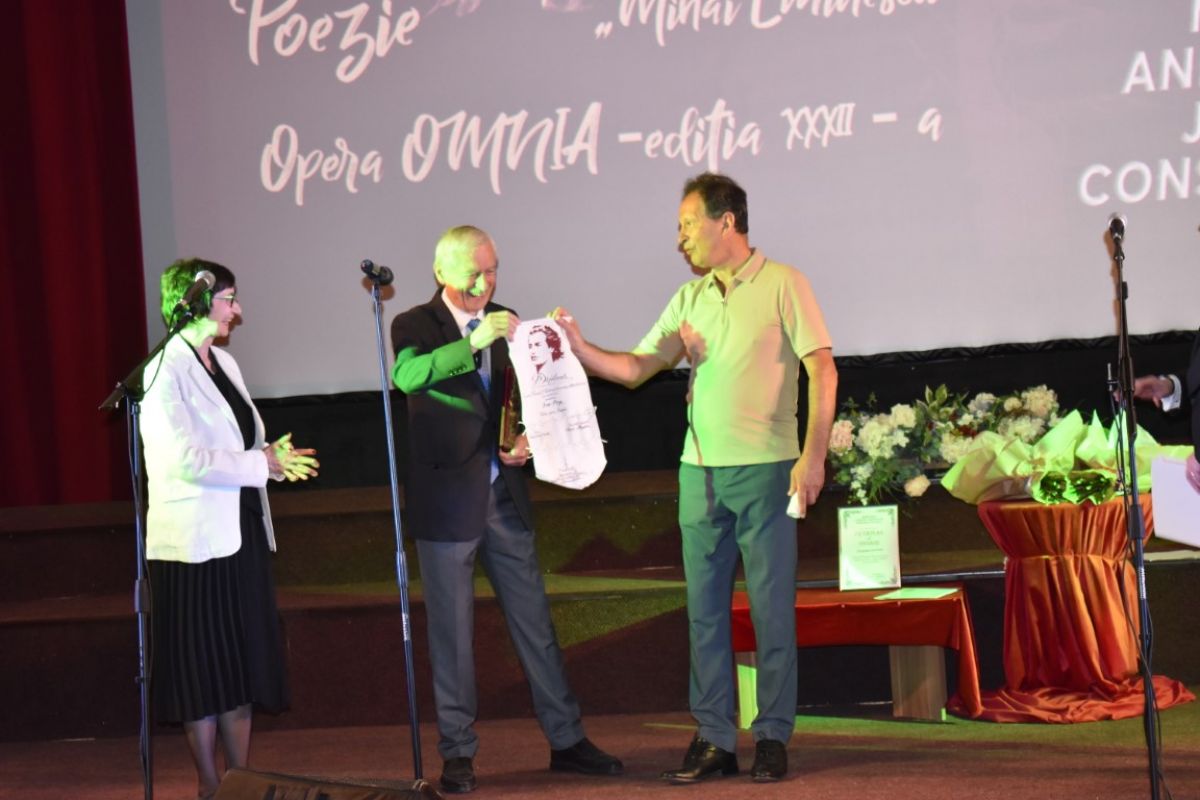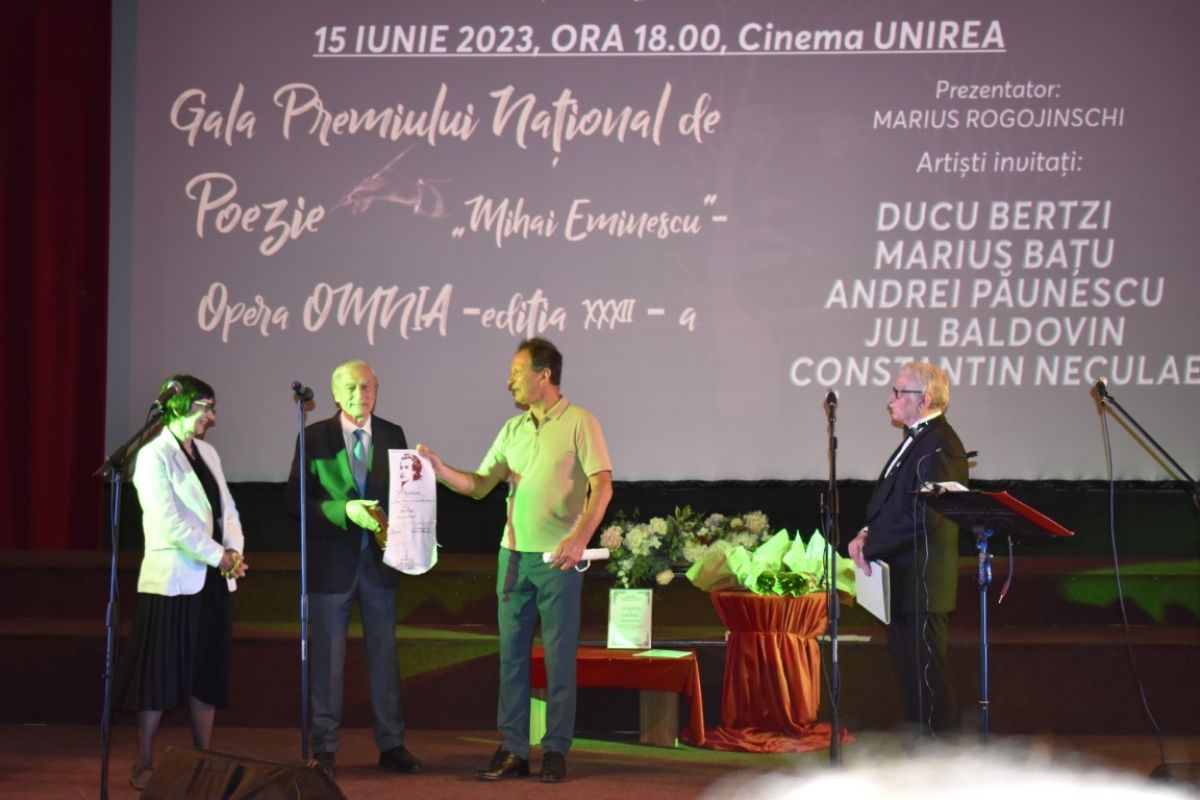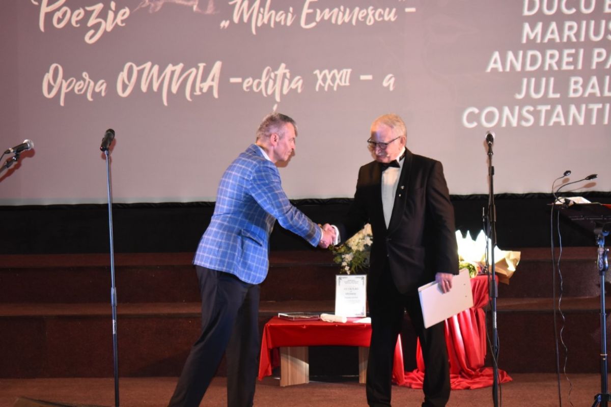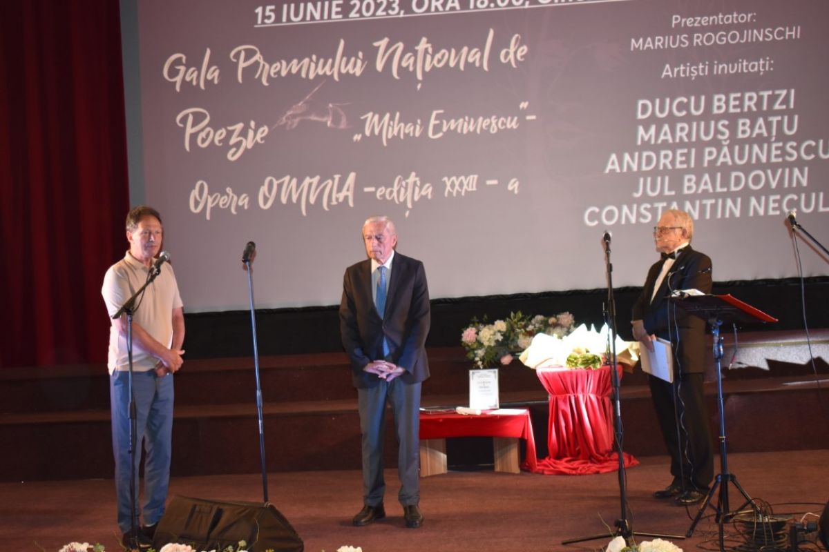 Nicolae Manolescu, președintele Uniunii Scriitorilor din România, nu a putut ajunge la Botoșani, el delegându-l pe Vasile Spiridon să-i țină locul. Poetul delegat a rostit numele laureatului premiului național, pentru anul 2022: „Juriul a decis ca Premiul Național Mihai Eminescu – Opera Omnia să se acorde lui Ion Pop”, iar ulterior i-a făcut un laudatio.