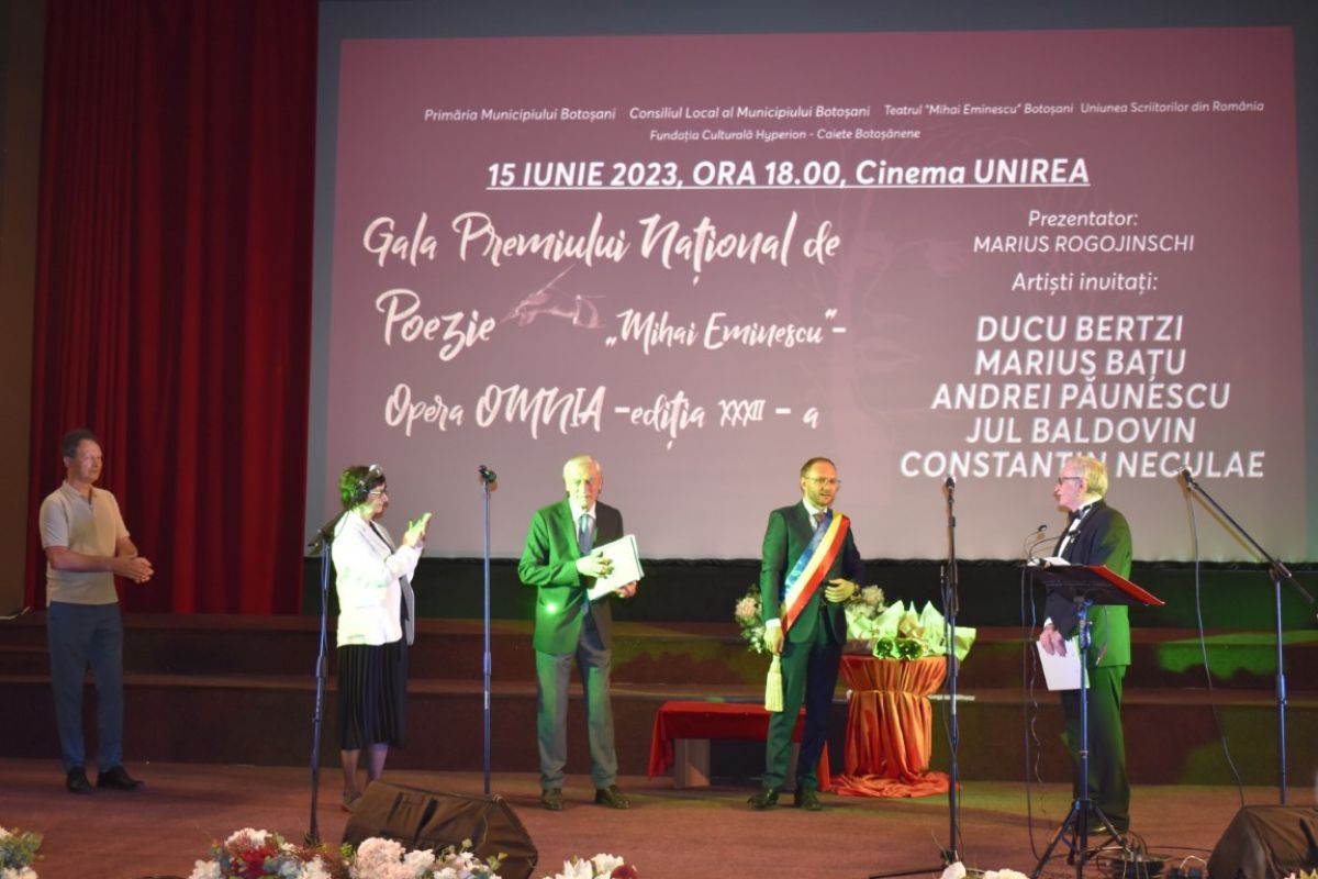 „Iată că noi botoșănenii trăim din nou un moment înălțător pentru ceea ce înseamnă istoria culturală a acestui frumos oraș. Acest premiu a pornit în 1991 printr-o inițiativă locală a Inspectoratului de la acea vreme care reprezenta Ministerul Culturii, Fundația Culturală Hyperion – Caiete botoșănene și municipalitatea botoșăneană. Iată că astăzi asistăm la cea de-a 32-a ediții a Galei de decernare a Premiului Național Mihai Eminescu”,