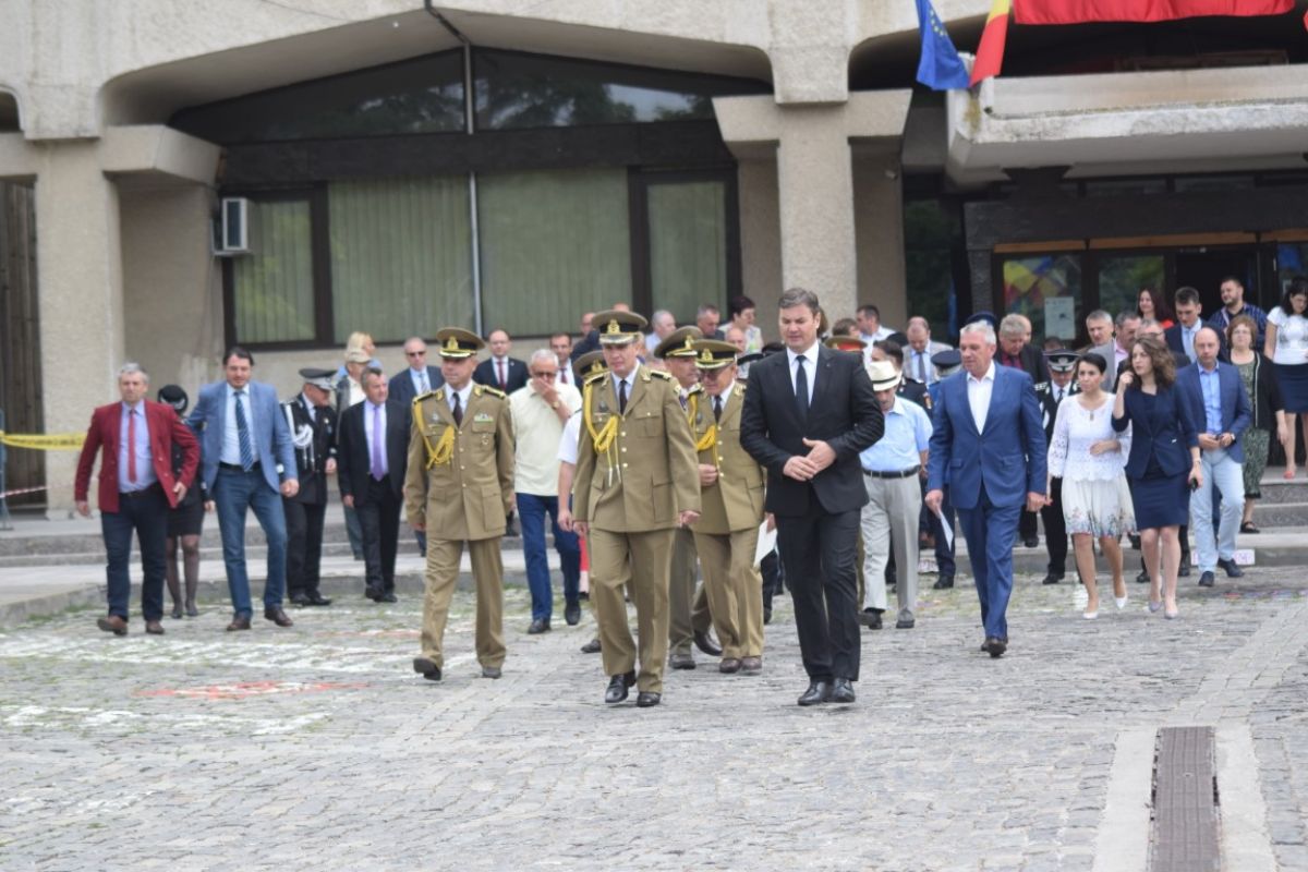 Mai apoi, la microfon, o parte dintre oficialități, printre care prefectul Dan Șlincu, președintele Consiliului Județean, Costică Macaleți sau primarul Cătălin Flutur, alături de cadre militare și șefi ai structurilor MAI au explicat fiecare drapel în parte care a fost oficializat în România.