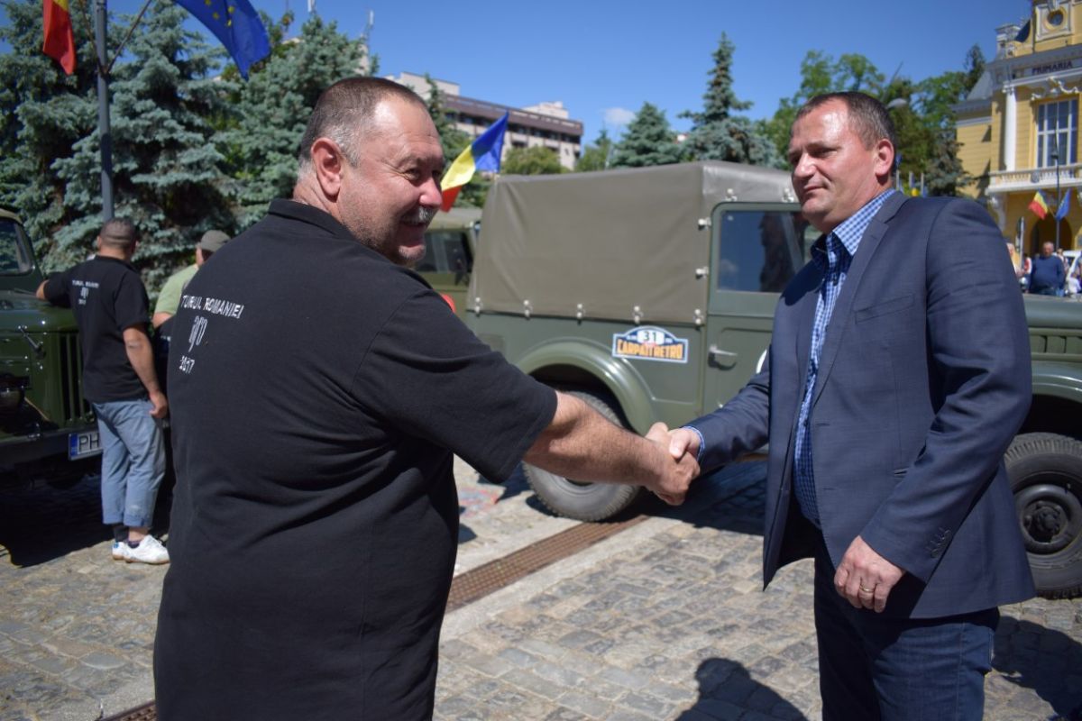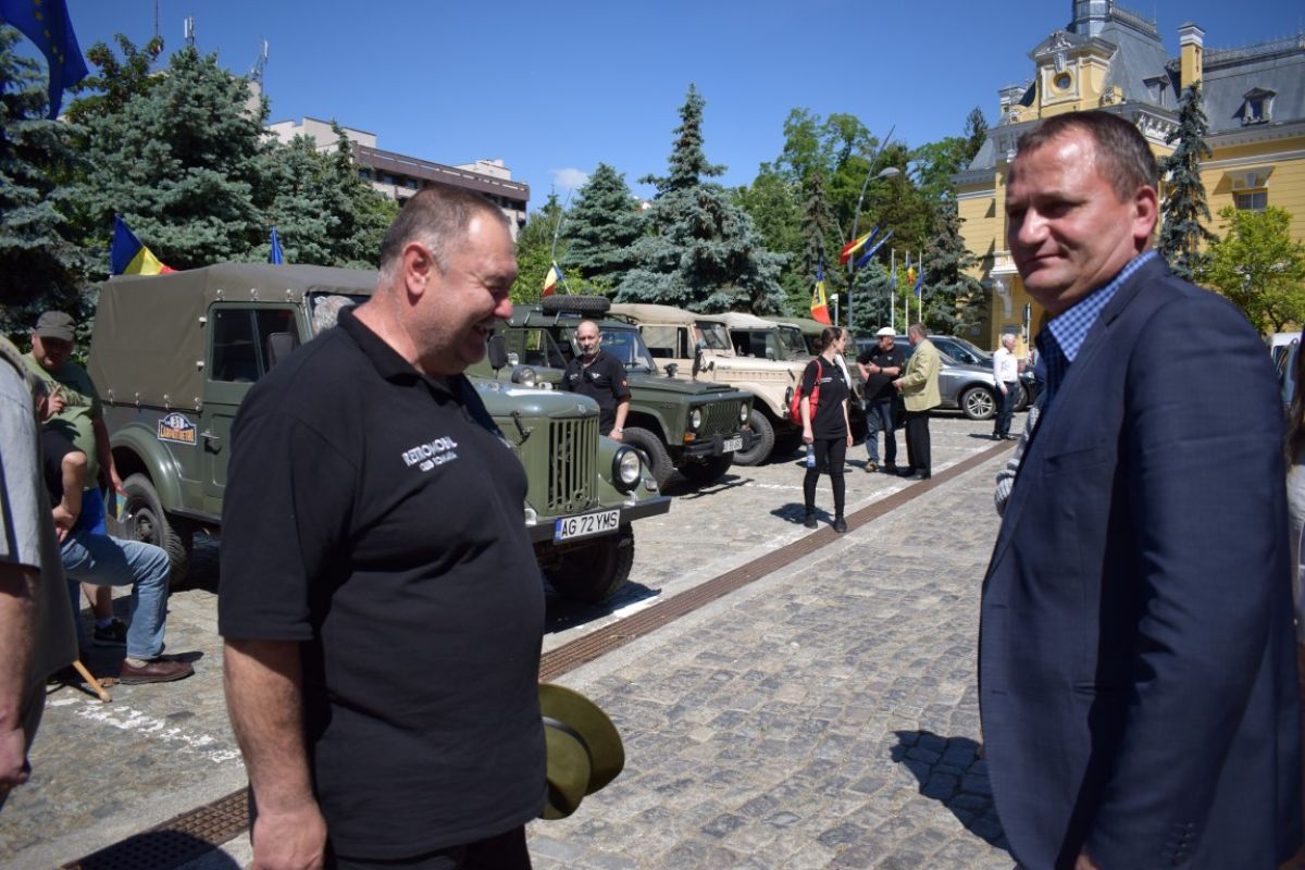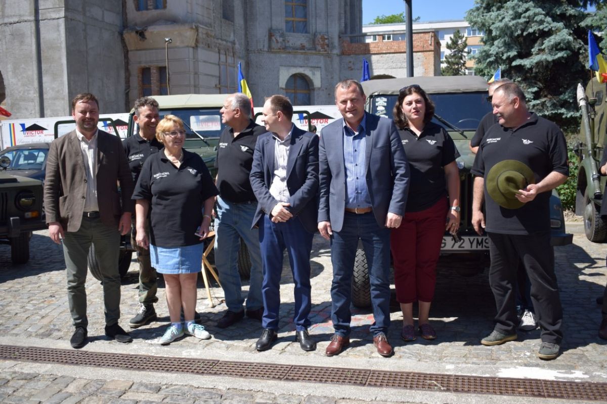 La Botoșani, în Piața Revoluției, vizitatorii care au venit într-un convoi format din 10 mașini ARO au fost întâmpinați de vicepreședintele CJ, Dorin Birta și viceprimarul Cosmin Andrei.
