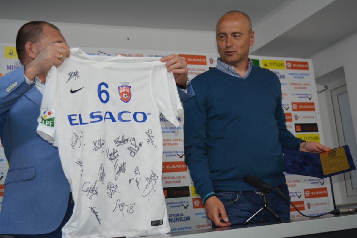 Preparatorul fizic, Ovidiu Chiribici, care părăsește la rândul său clubul, a primit și el un tricou cu semnăturile fotbaliștilor.