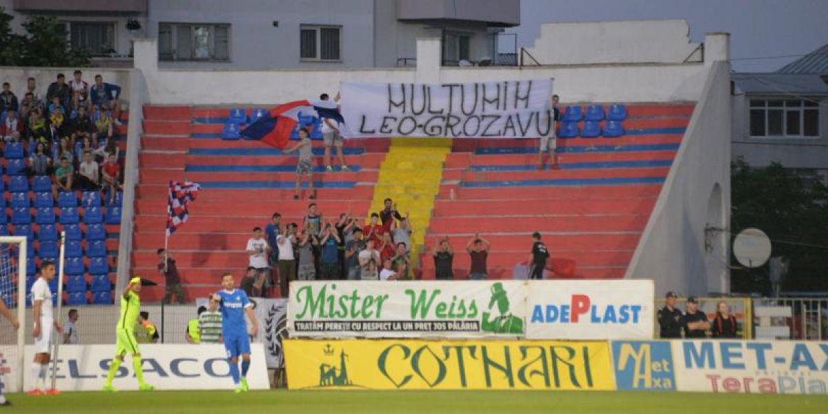 Primit cu aplauze de cei aproximativ 2.000 de spectatori, tehnicianul a avut parte și de un mesaj special al galeriei, care a afișat un banner pe care scria: ”Mulțumim Leo Grozavu”.
