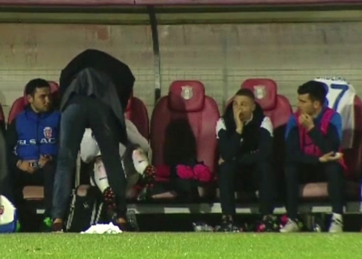 “E clar că vom lua măsuri, avem regulament de ordine interioară. L-a deranjat şi gestul lui Golofca când a aruncat tricoul, dar asta nu-l scuză cu nimic. S-au întâmplat astfel de momente şi la case mai mari, dar nu în timpul jocului, e drept. Grozavu nu ţine de scaun. Vedem cum va reacţiona el, e posibil să nu mai vrea el să continue",