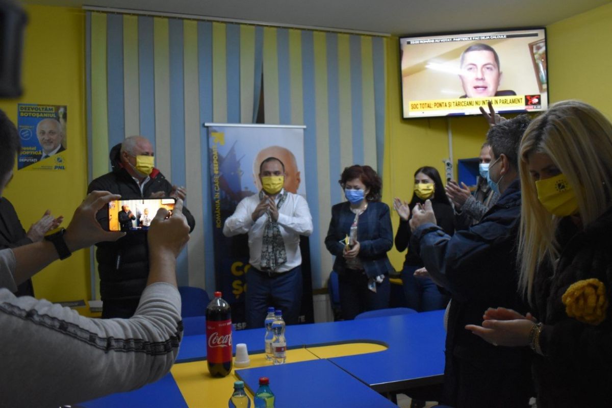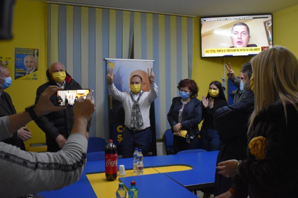 ”Victorie!”, a exclamat atunci Costel Șoptică, adăugând apoi că, ”vom fi la guvernare”. Senatorul candidat la Camera Deputaților le-a cerut apoi colegilor să nu mai fie supărați și imediat Radu Grigoraș, locul 4 la deputați, le-a spus că nu sunt triști și a făcut semnul victoriei, după care s-a aplaudat.
