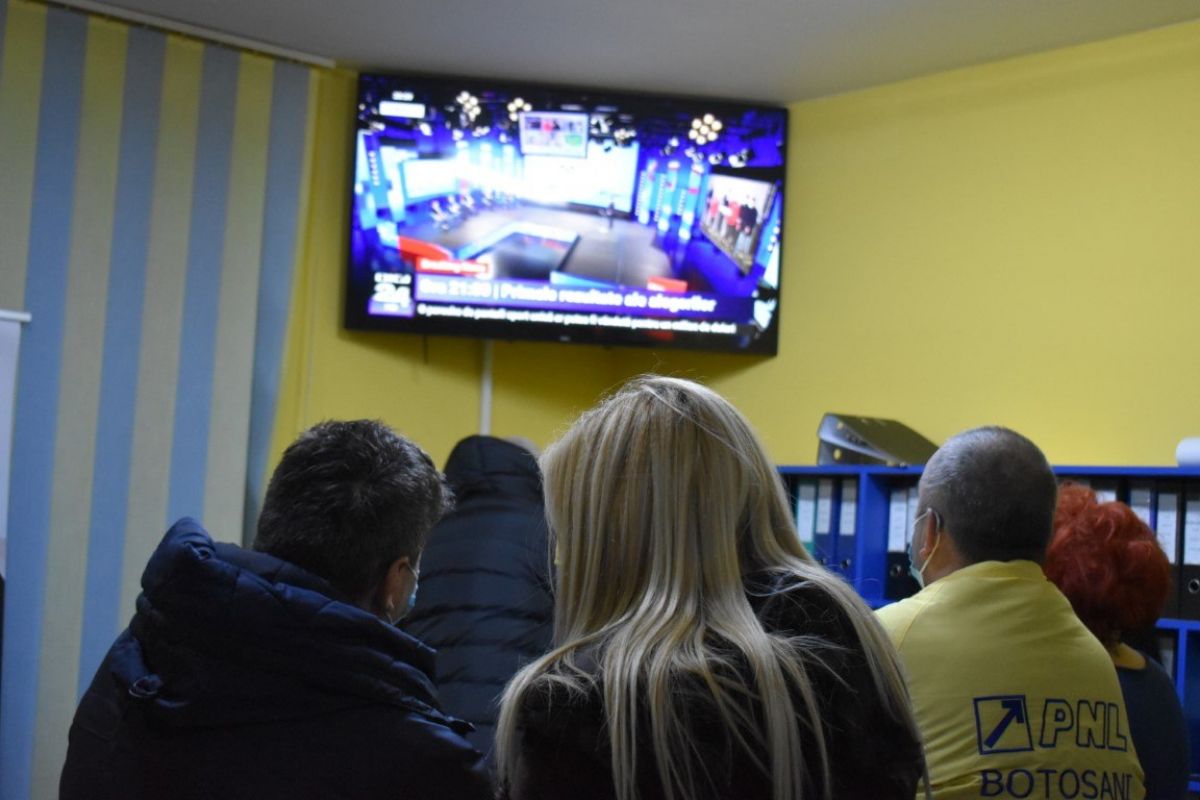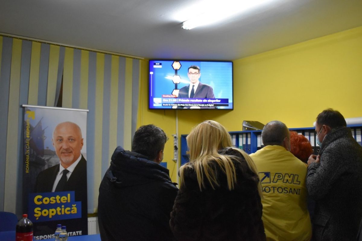 La ora 21:00, când s-au făcut publice rezultatele sondajelor, la sediu se aflau zeci de oameni, candidați, directori, liberali mai noi și mai vechi.
