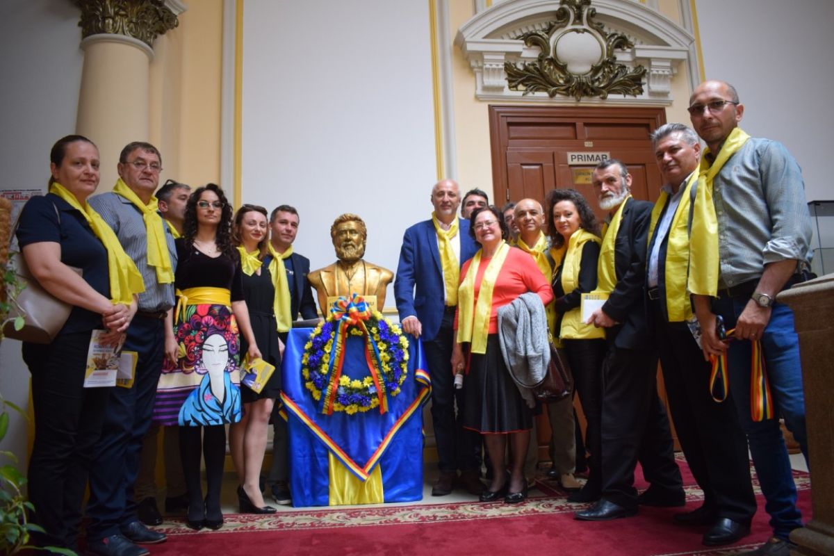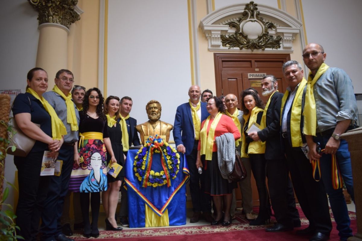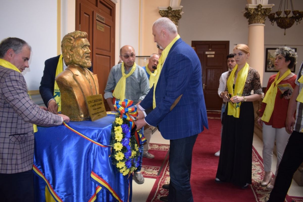 Ineditul acțiunii a constat în faptul că, probabil pentru prima dată sunt aduse jerbe de flori la un bust care se află în interior, pe holul unei instituții.