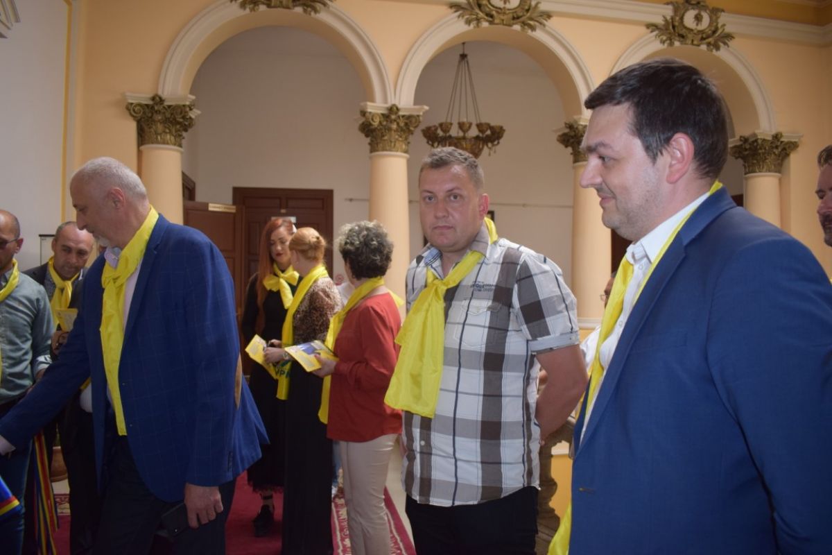A urmat o nouă fotografie de grup, holul Primăriei fiind umplut de grupul galben. ”Vom lua și Primăria” s-a auzit din grup o voce care a trasat obiectivul PNL pentru 2020.