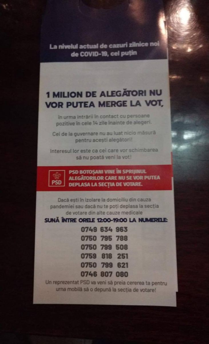 Mai exact, pe respectivele materiale se menționa că PSD este singurul partid care sprijină oamenii în carantină și izolare, fiind date mai multe numere de telefon la care cei aflați într-o asemenea situație pot suna.