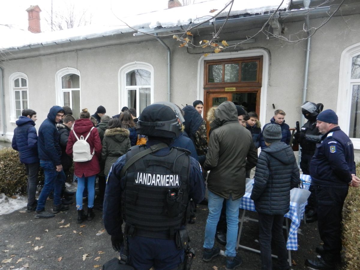 Nu în ultimul rând, elevii au fost interesaţi de condiţiile pe care trebuie să le îndeplinească candidaţii pentru admiterea la şcolile militare de subofiţeri jandarmi sau la Facultatea de Jandarmi din cadrul Academiei de Poliţie ,,Alexandru Ioan Cuza” Bucureşti. Cine ştie, poate peste câţiva ani unii dintre ei vor îmbrăţişa această carieră şi vor fi colegii celor care în această dimineaţă au stat de vorbă cu ei.