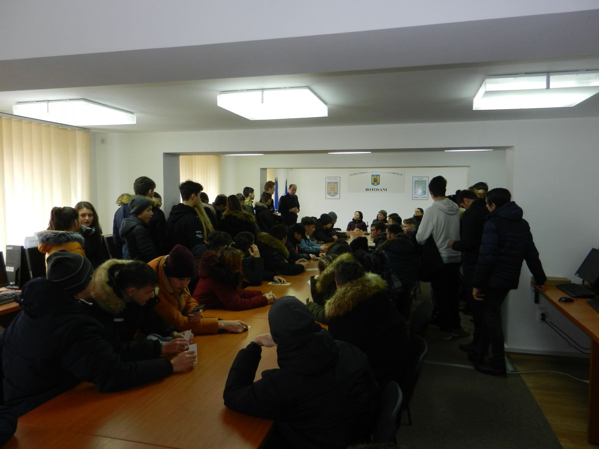 Sala tradiţiilor, mijloacele din dotare şi dispeceratul de misiuni le-au fost prezentate pe rând liceenilor de la Colegiul Tehnic ,,Gheorghe Asachi” din municipiul Botoşani, după care şeful inspectoratului, colonelul Dobrin-Cristian Onofrei a stat de vorbă cu cei prezenţi şi le-a arătat noul Drapel de Luptă al inspectoratului.