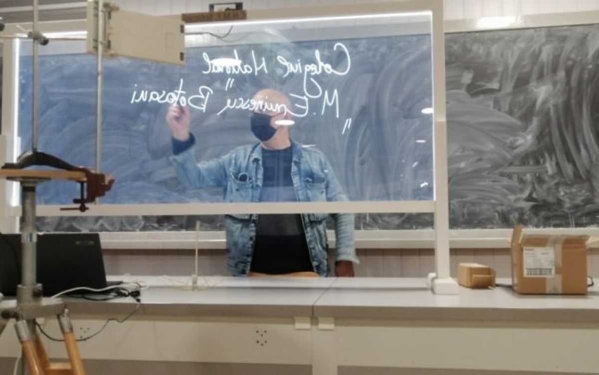 Un profesor de fizică din Botoşani a reuşit să construiască un dispozitiv hi-tech, inspirat de o invenţie americană, pentru a preda mai uşor şi mai atractiv materia în timpul orelor online.