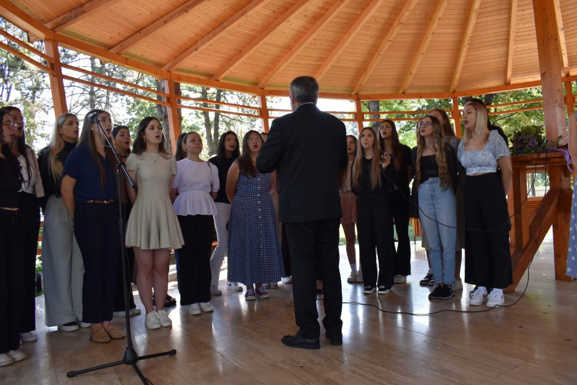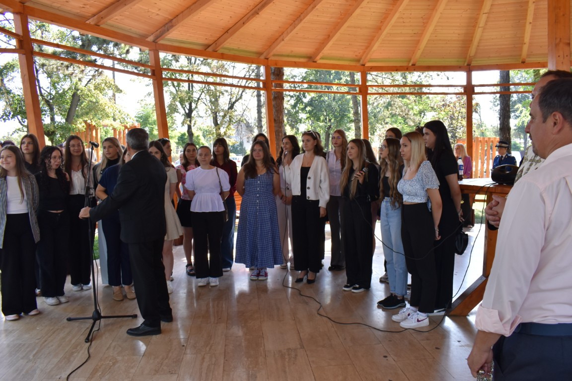 Imnul Național al României dar și imnul Liceului Pedagogic au fost intonate de elevii care fac parte din corul instituției de învățământ coordonat de profesorul Laurențiu Palade.