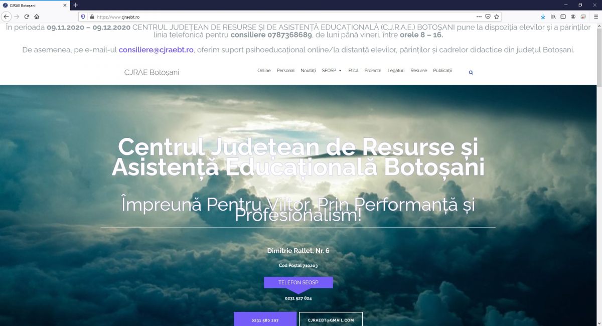 ”De asemenea, pe e-mail-ul [email protected], oferim suport psihoeducațional online/la distanță elevilor, părinților și cadrelor didactice din județul Botoșani”,