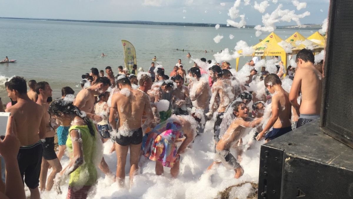 ”Nu e chiar că la mare, dar e bine. Cea mai ieftină alternativă la litoralul mării”, a mai spus Andrei Crăciun, un tânăr venit din zonă pentru a se bucura de soare, muzică şi spuma party.
