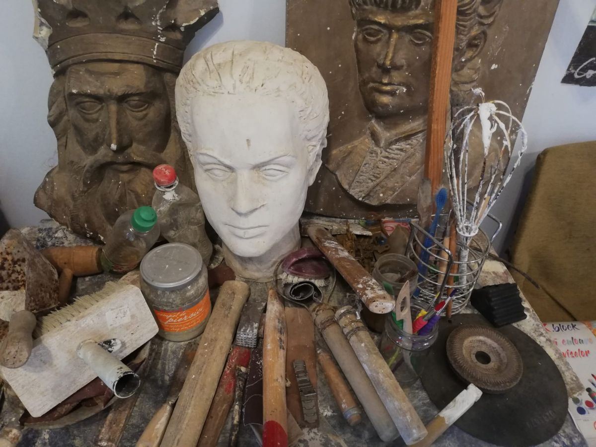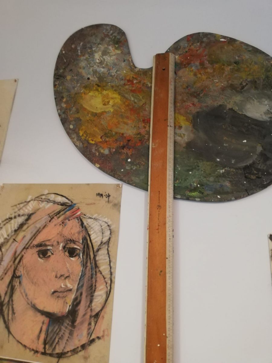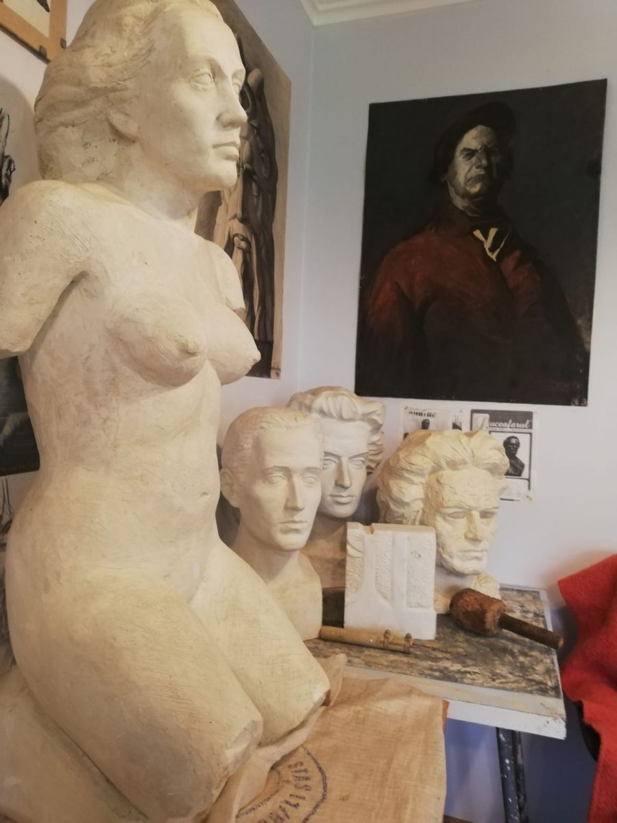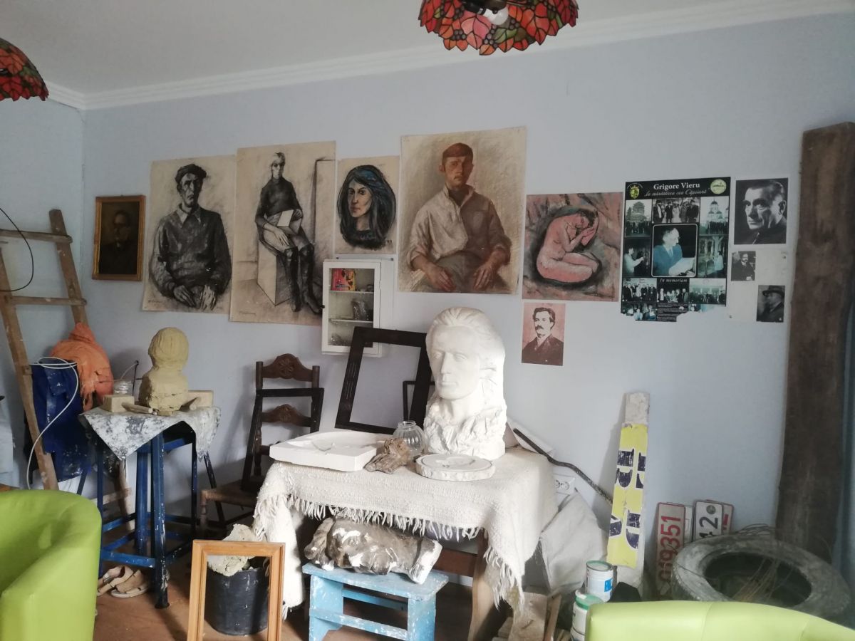 Culorile uscate pe paleta artistului, dălțile mari și mici, schițe, foi răzlețe, albume de artă, fotoliul și pledul ultimelor clipe, studii și gânduri rătăcite...